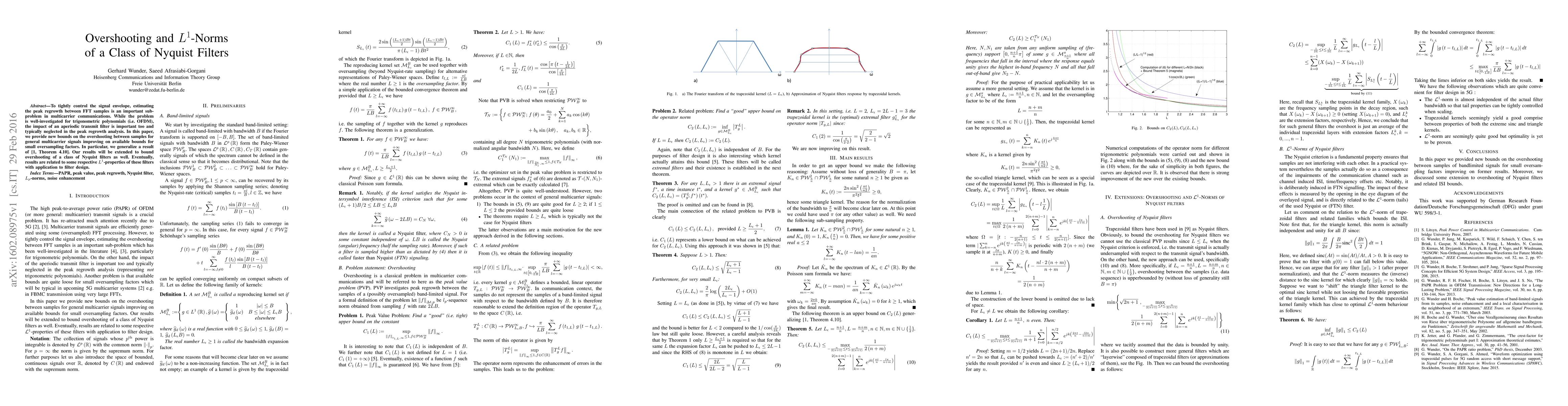 This paper presents new bounds for signal envelope control in multicarrier communications, addressing the overshooting between FFT samples caused by aperiodic transmit filters. It improves existing bounds for small oversampling factors and extends these results to a class of Nyquist filters, relating them to $L^1$-properties for filter design applications.