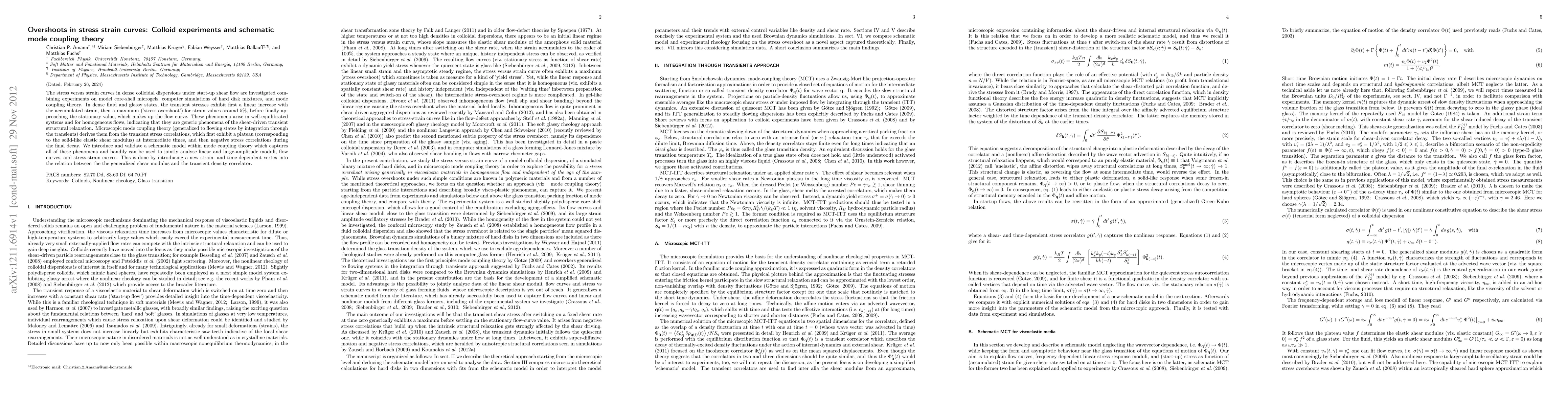 This paper investigates stress-strain curves in dense colloidal dispersions under shear flow, combining experiments, simulations, and mode coupling theory. It finds transient stress overshoots in the curves, which are explained by the theory's new strain- and time-dependent vertex model.