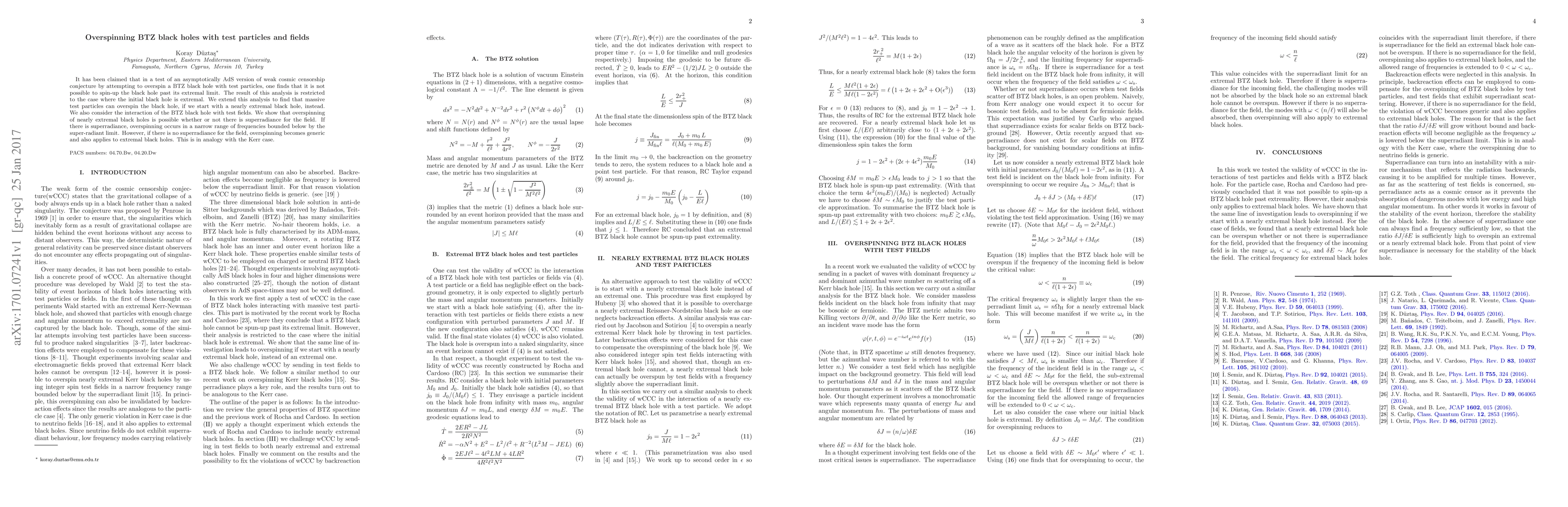 This paper examines the overspinning of BTZ black holes by massive test particles and fields, showing that starting with a nearly extremal black hole allows for overspinning, unlike extremal black holes. It also discusses the role of superradiance, finding that overspinning is possible even without it, similar to the Kerr black hole scenario.