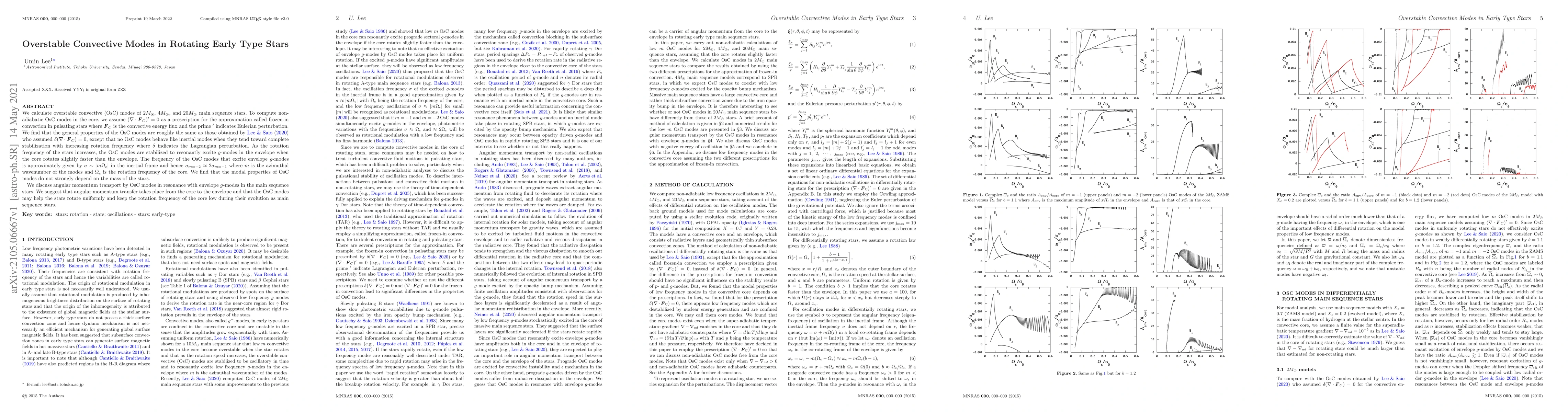 This paper investigates the overstable convective (OsC) modes in rotating early-type stars, finding that these modes stabilize and excite envelope $g$-modes as rotation frequency increases, suggesting a mechanism for angular momentum transport from the core to the envelope. The study concludes that OsC modes may help maintain uniform rotation and low core rotation frequencies in main sequence stars.