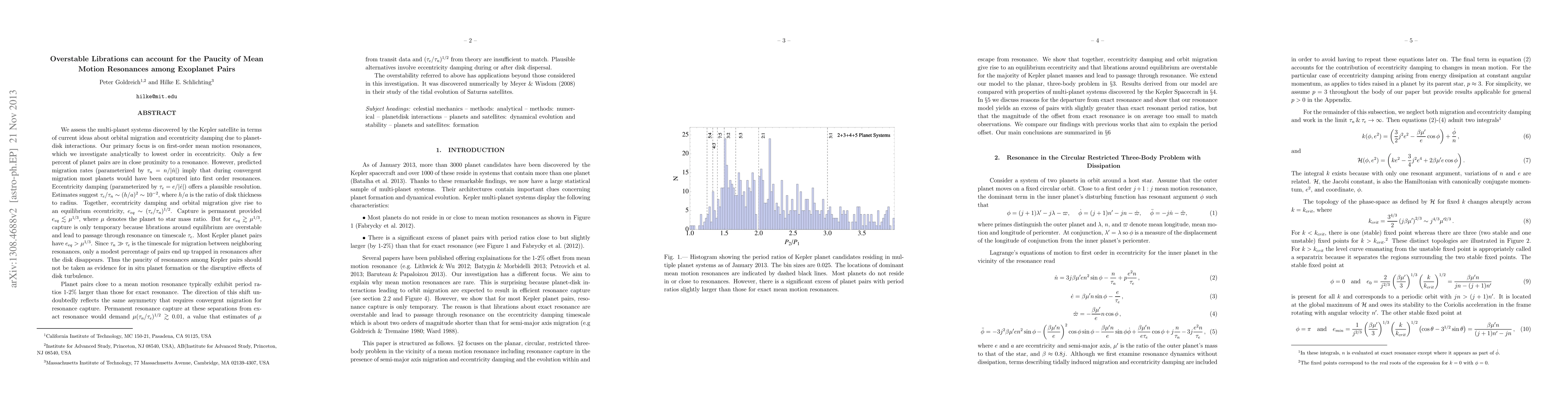 We assess the multi-planet systems discovered by the Kepler satellite in terms of current ideas about orbital migration and eccentricity damping due to planet-disk interactions. Our primary focus is on mean motion resonances. Only a few percent of planet pairs are in close proximity to a resonance. However, predicted migration rates (parameterized by $\tau_n=n/{|\dot n|}$) imply that during convergent migration most planets would have been captured into first order resonances. Eccentricity damping (parameterized by $\tau_e=e/{|\dot e|}$) offers a plausible resolution. Estimates suggest $\tau_e/\tau_n\sim (h/a)^2\sim 10^{-2}$, where $h/a$ is the ratio of disk thickness to radius. Together, eccentricity damping and orbital migration give rise to an equilibrium eccentricity, $e_{eq}\sim(\tau_e/\tau_n)^{1/2}$. Capture is permanent provided $e_{eq}\lesssim \mu^{1/3}$, where $\mu$ denotes the planet to star mass ratio. But for $e_{eq}\gtrsim \mu^{1/3}$, capture is only temporary because librations around equilibrium are overstable and lead to passage through resonance on timescale $\tau_e$. Most Kepler planet pairs have $e_{eq}>\mu^{1/3}$. Since $\tau_n>> \tau_e$ is the timescale for migration between neighboring resonances, only a modest percentage of pairs end up trapped in resonances after the disk disappears. Planet pairs close to a mean motion resonance typically exhibit period ratios 1-2% larger than those for exact resonance. The direction of this shift undoubtedly reflects the same asymmetry that requires convergent migration for resonance capture. Permanent resonance capture at these separations from exact resonance would demand $\mu (\tau_n/\tau_e)^{1/2}\gtrsim 0.01$, a value that estimates of $\mu$ from transit data and $(\tau_e/\tau_n)^{1/2}$ from theory are insufficient to match. Plausible alternatives involve eccentricity damping during or after disk dispersal. (Abridged)