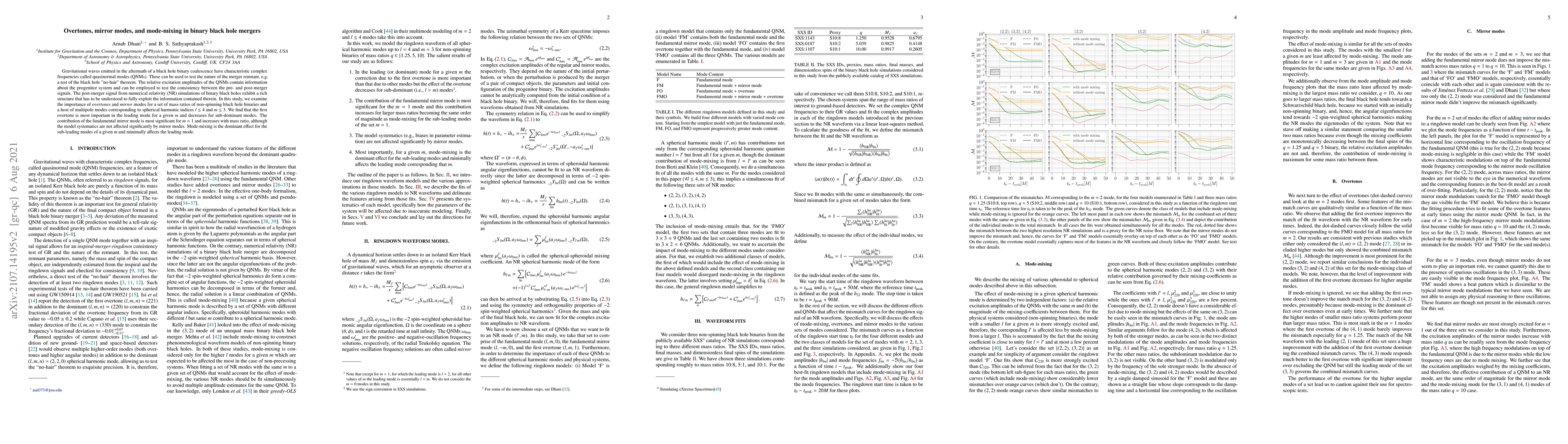 This study investigates the complex frequencies of quasinormal modes (QNMs) in binary black hole mergers, focusing on overtones, mirror modes, and mode-mixing. It finds that the first overtone is crucial for leading modes, while the fundamental mirror mode significantly impacts $m=1$ modes, especially with higher mass ratios. Mode-mixing predominantly affects sub-leading modes, minimally impacting the leading mode.
