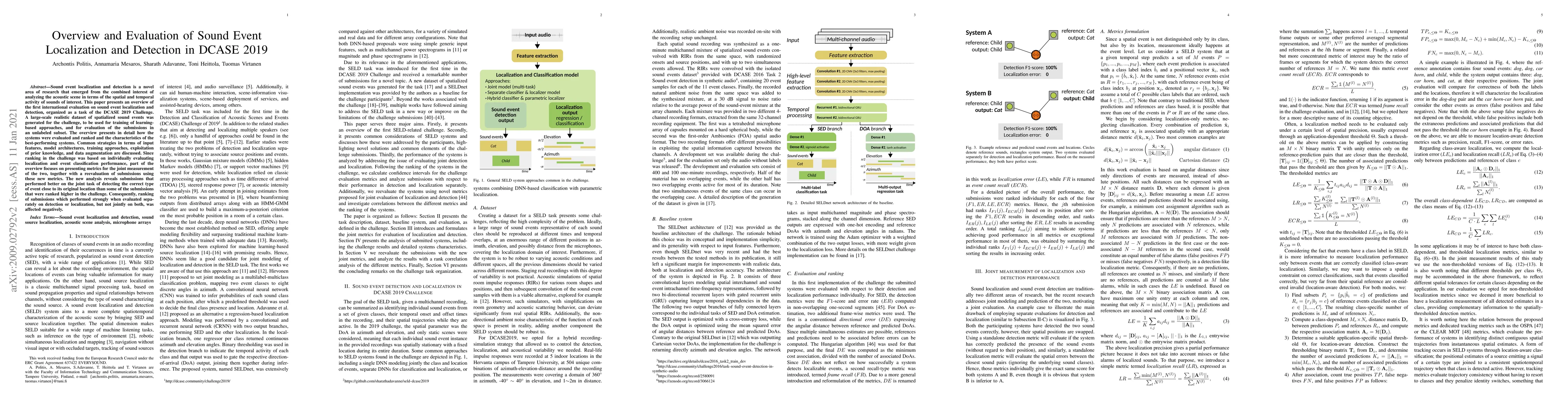This paper provides an overview of the DCASE 2019 Challenge on sound event localization and detection, evaluating submissions based on both localization and event classification performance. It highlights the best-performing systems and discusses common strategies used, revealing that some top-ranked submissions performed poorly on the joint task.