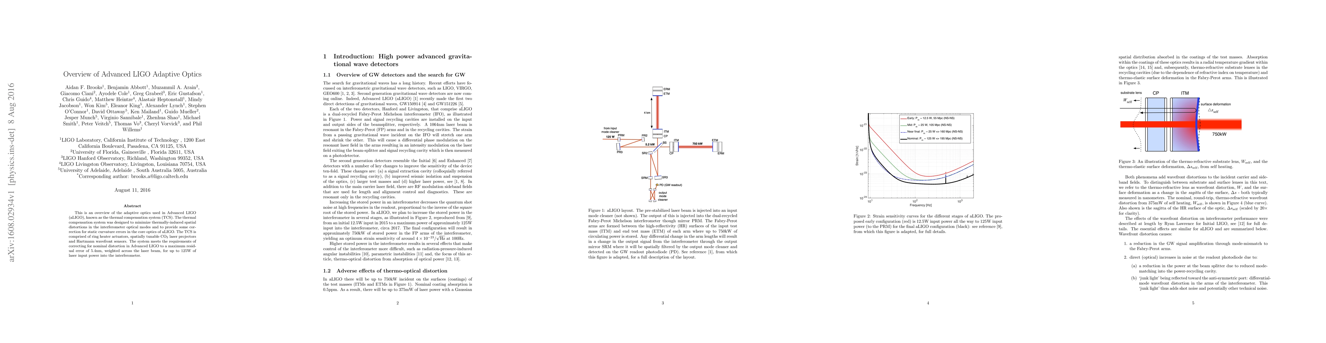 This is an overview of the adaptive optics used in Advanced LIGO (aLIGO), known as the thermal compensation system (TCS). The thermal compensation system was designed to minimize thermally-induced spatial distortions in the interferometer optical modes and to provide some correction for static curvature errors in the core optics of aLIGO. The TCS is comprised of ring heater actuators, spatially tunable CO$_{2}$ laser projectors and Hartmann wavefront sensors. The system meets the requirements of correcting for nominal distortion in Advanced LIGO to a maximum residual error of 5.4nm, weighted across the laser beam, for up to 125W of laser input power into the interferometer.