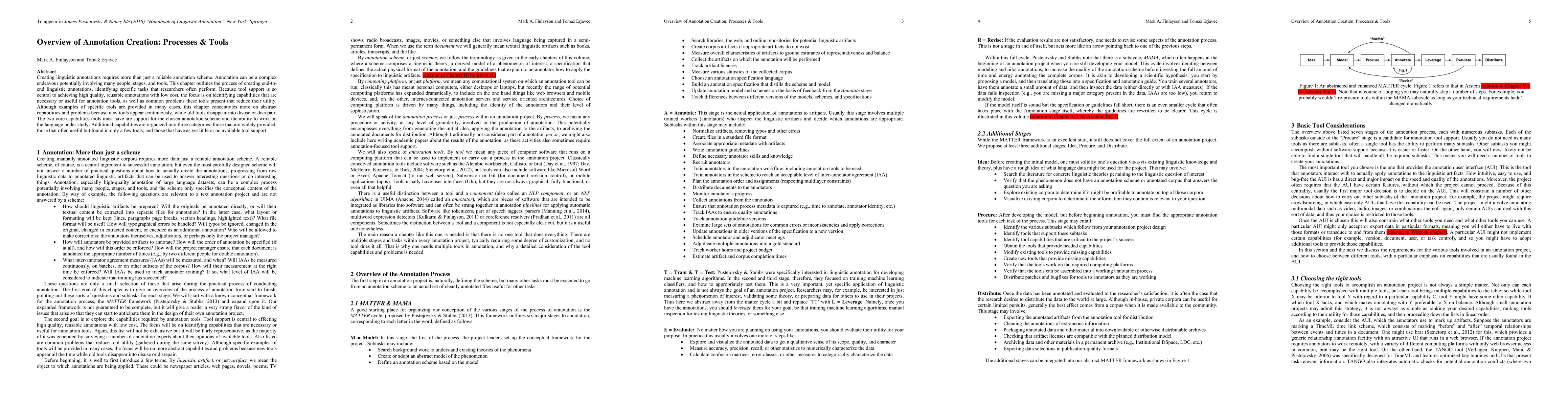 Creating linguistic annotations requires more than just a reliable annotation scheme. Annotation can be a complex endeavour potentially involving many people, stages, and tools. This chapter outlines the process of creating end-to-end linguistic annotations, identifying specific tasks that researchers often perform. Because tool support is so central to achieving high quality, reusable annotations with low cost, the focus is on identifying capabilities that are necessary or useful for annotation tools, as well as common problems these tools present that reduce their utility. Although examples of specific tools are provided in many cases, this chapter concentrates more on abstract capabilities and problems because new tools appear continuously, while old tools disappear into disuse or disrepair. The two core capabilities tools must have are support for the chosen annotation scheme and the ability to work on the language under study. Additional capabilities are organized into three categories: those that are widely provided; those that often useful but found in only a few tools; and those that have as yet little or no available tool support.