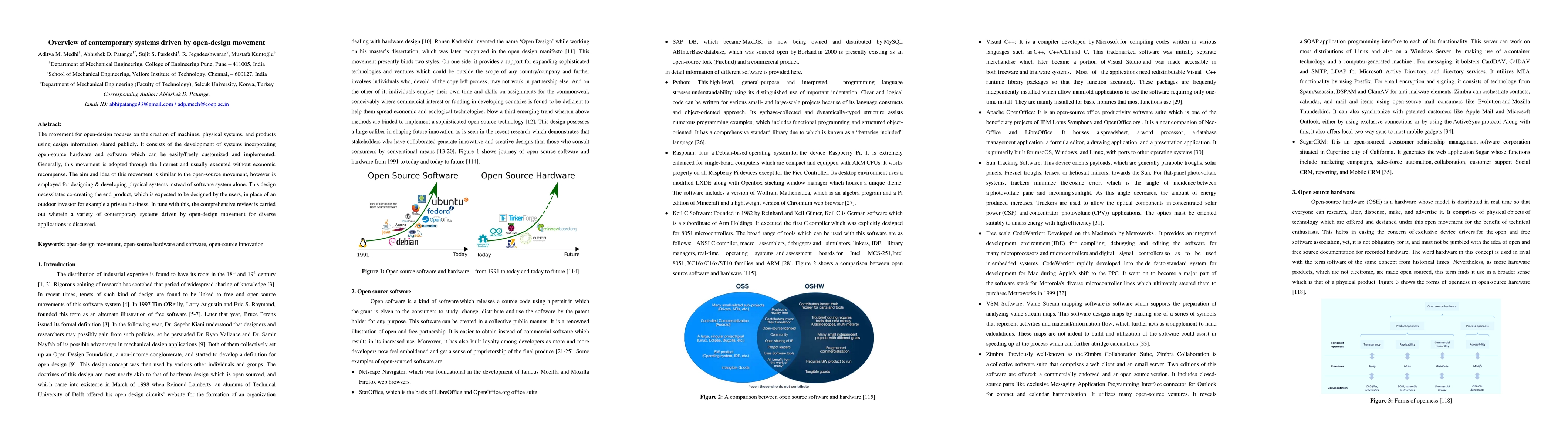 The movement for open-design focuses on the creation of machines, physical systems, and products using design information shared publicly. It consists of the development of systems incorporating open-source hardware and software which can be easily/freely customized and implemented. Generally, this movement is adopted through the Internet and usually executed without economic recompense. The aim and idea of this movement is similar to the open-source movement, however is employed for designing & developing physical systems instead of software system alone. This design necessitates co-creating the end product, which is expected to be designed by the users, in place of an outdoor investor for example a private business. In tune with this, the comprehensive review is carried out wherein a variety of contemporary systems driven by open-design movement for diverse applications is discussed.