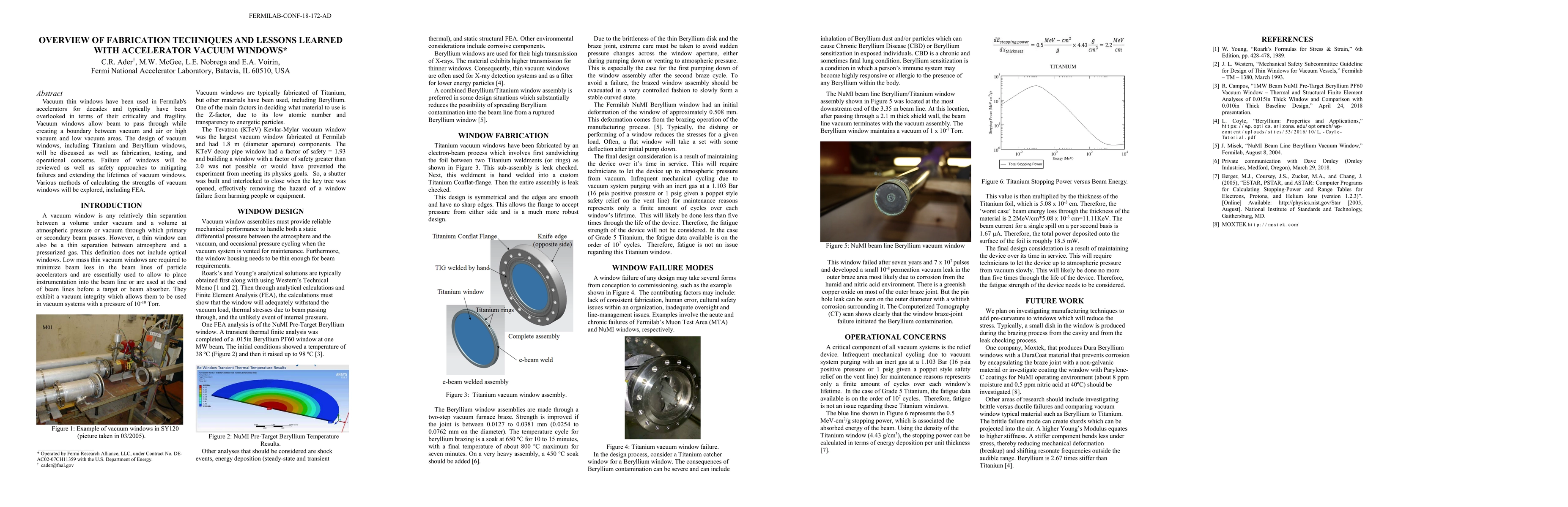 Vacuum thin windows have been used in Fermilab's accelerators for decades and typically have been overlooked in terms of their criticality and fragility. Vacuum windows allow beam to pass through while creating a boundary between vacuum and air or high vacuum and low vacuum areas. The design of vacuum windows, including Titanium and Beryllium windows, will be discussed as well as fabrication, testing, and operational concerns. Failure of windows will be reviewed as well as safety approaches to mitigating failures and extending the lifetimes of vacuum windows. Various methods of calculating the strengths of vacuum windows will be explored, including FEA.