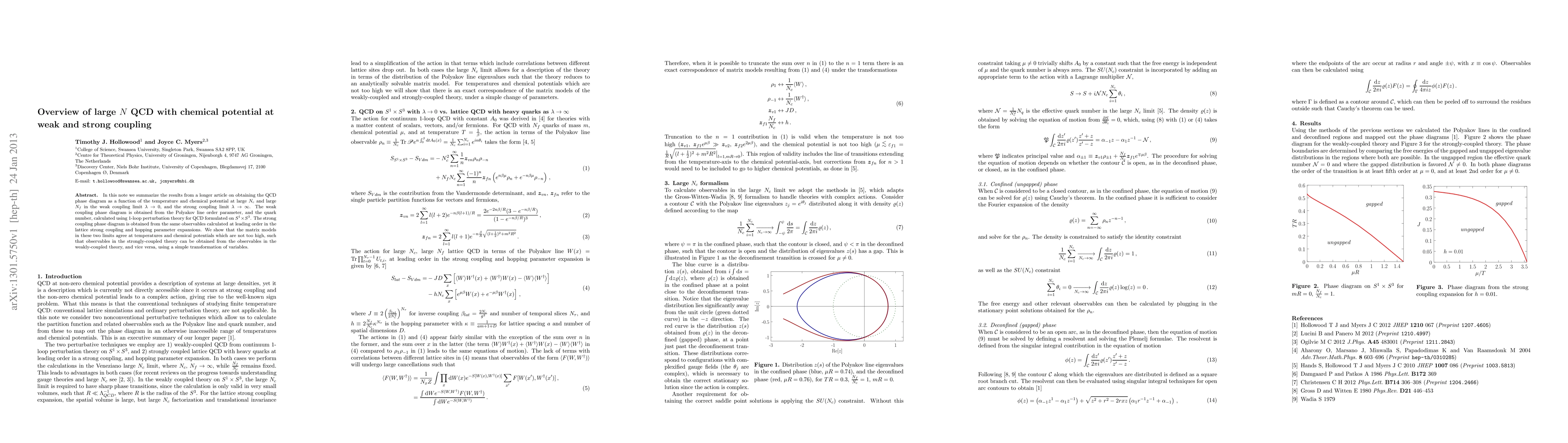 In this note we summarize the results from a longer article on obtaining the QCD phase diagram as a function of the temperature and chemical potential at large Nc and large Nf in the weak and the strong coupling limits. The weak coupling phase diagram is obtained from the Polyakov line order parameter, and the quark number, calculated using 1-loop perturbation theory for QCD formulated on S^1 x S^3. The strong coupling phase diagram is obtained from the same observables calculated at leading order in the lattice strong coupling and hopping parameter expansions. We show that the matrix models in these two limits agree at temperatures and chemical potentials which are not too high, such that observables in the strongly-coupled theory can be obtained from the observables in the weakly-coupled theory, and vice versa, using a simple transformation of variables.