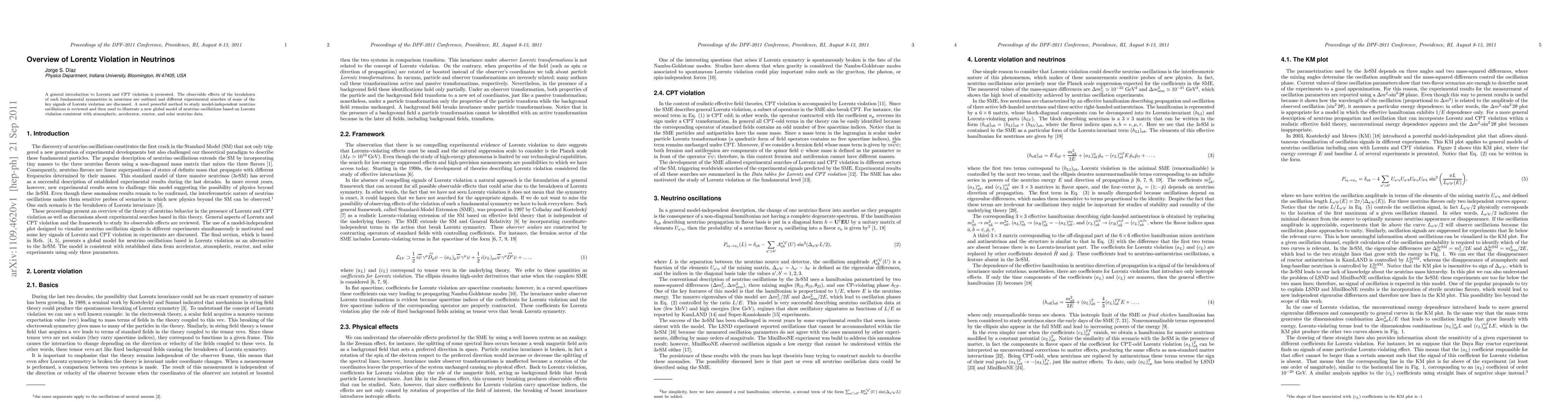This paper provides an introduction to Lorentz and CPT violation, outlining observable effects in neutrinos and reviewing experimental searches for these violations. It also introduces a novel method for studying model-independent neutrino oscillations and applies it to a new global model consistent with various neutrino data.