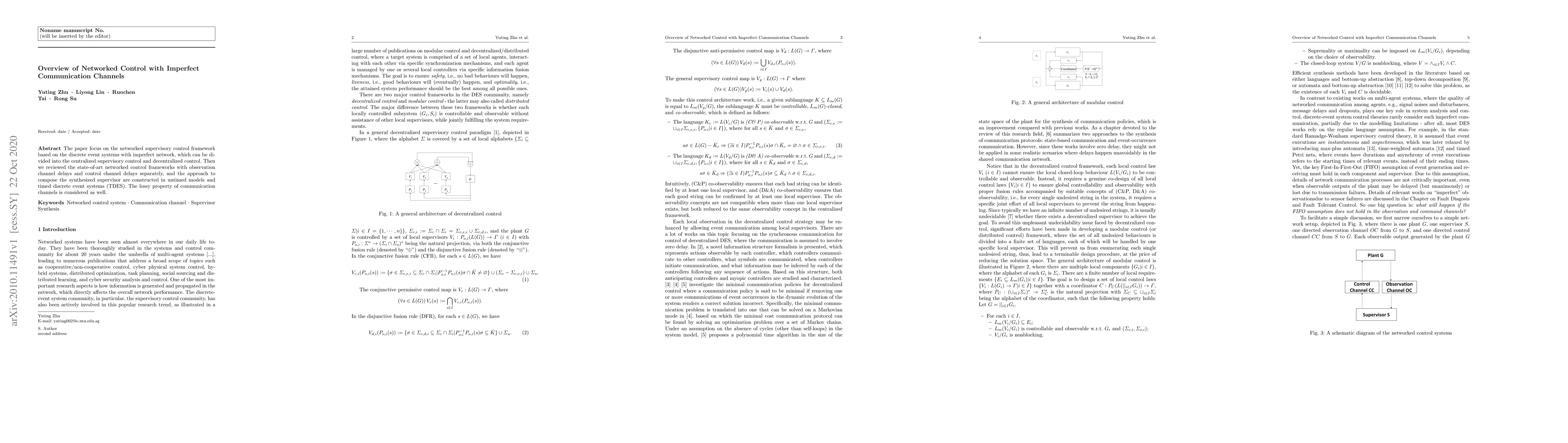 This paper presents an overview of the networked supervisory control framework for discrete event systems with imperfect communication networks, which can be divided into the centralized supervisory control setup and the decentralized supervisory control setup. We review the state-of-art networked control frameworks with observation channel delays and control channel delays, for untimed and timed models. Data losses in communication channels are also considered. The review of the state-of-art networked control frameworks will be focused on the following parts: 1) the construction of the networked control closed-loop system 2) the condition to ensure the existence of a networked supervisor 3) the synthesis procedure for networked-delay resilient supervisor 4) the possibility of improving the synthesis efficiency.