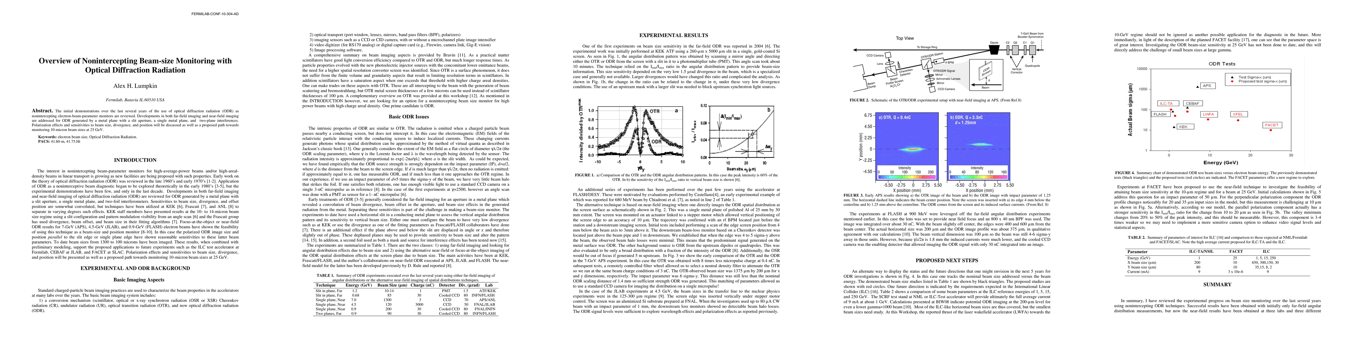 The initial demonstrations over the last several years of the use of optical diffraction radiation (ODR) as non-intercepting electron-beam-parameter monitors are reviewed. Developments in both far-field imaging and near-field imaging are addressed for ODR generated by a metal plane with a slit aperture, a single metal plane, and two-plane interferences. Polarization effects and sensitivities to beam size, divergence, and position will be discussed as well as a proposed path towards monitoring 10-micron beam sizes at 25 GeV.
