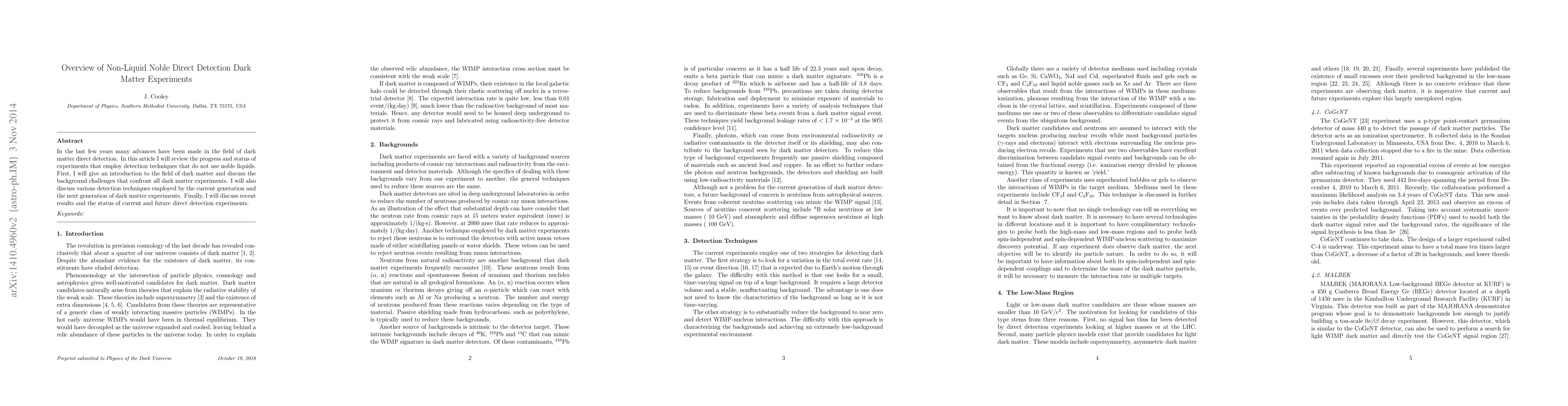 This paper reviews recent advancements in non-liquid noble direct detection experiments for dark matter, discussing background challenges, current and next-generation detection techniques, and the status of ongoing and future experiments. It provides an overview of the field and highlights recent results.