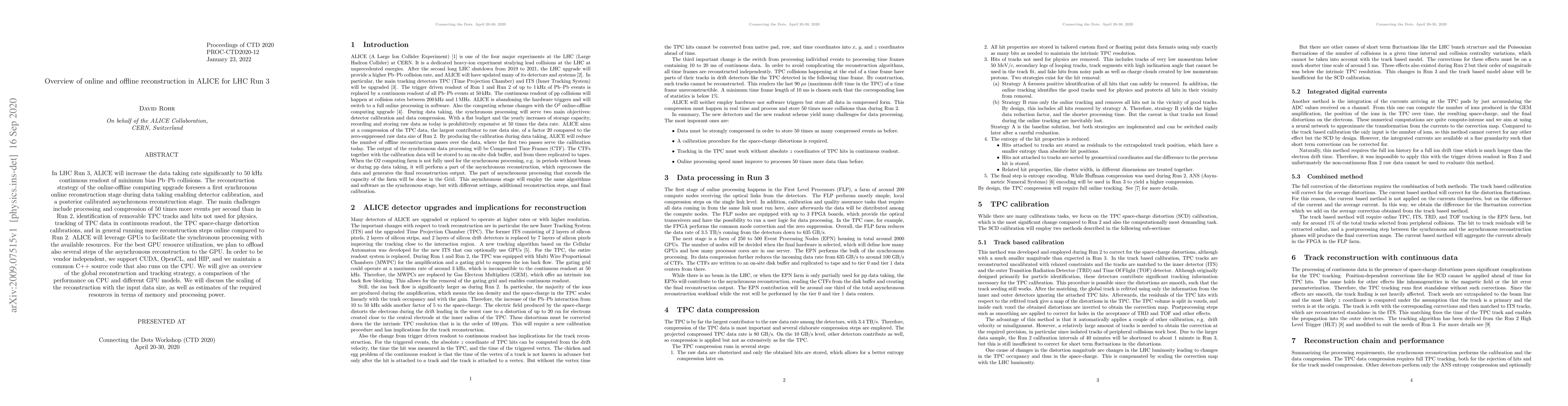 This paper provides an overview of ALICE's reconstruction strategy for LHC Run 3, emphasizing a dual online-offline approach to handle a significant increase in data rate to 50 kHz. It focuses on the use of GPUs to enhance processing efficiency and outlines performance comparisons between CPU and various GPU models, aiming for optimal resource utilization and vendor independence.