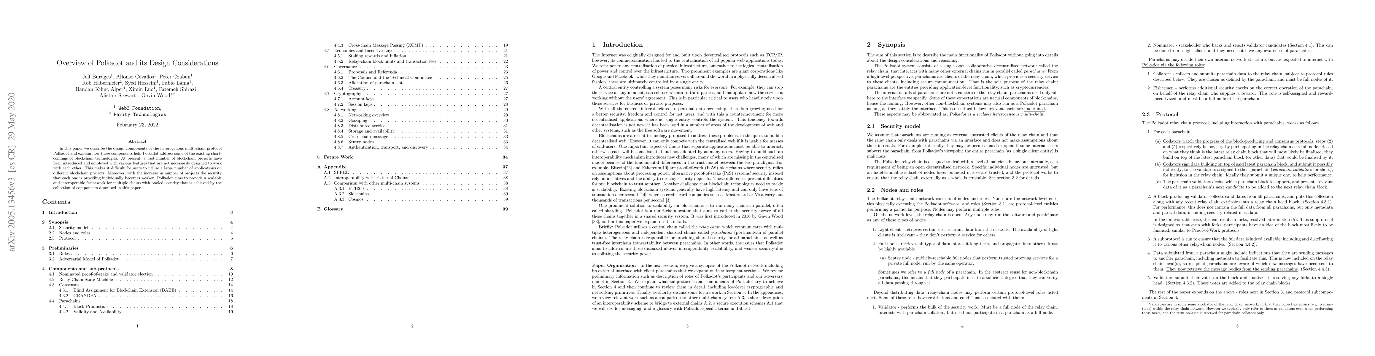 In this paper we describe the design components of the heterogenous multi-chain protocol Polkadot and explain how these components help Polkadot address some of the existing shortcomings of blockchain technologies. At present, a vast number of blockchain projects have been introduced and employed with various features that are not necessarily designed to work with each other. This makes it difficult for users to utilise a large number of applications on different blockchain projects. Moreover, with the increase in number of projects the security that each one is providing individually becomes weaker. Polkadot aims to provide a scalable and interoperable framework for multiple chains with pooled security that is achieved by the collection of components described in this paper.
