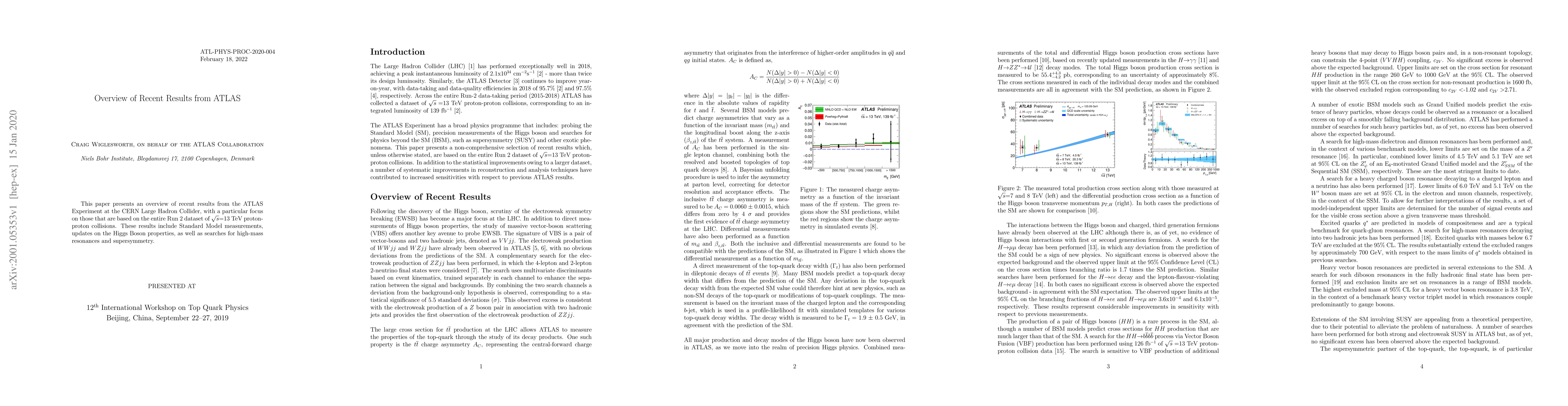 This paper summarizes recent findings from the ATLAS Experiment at CERN's Large Hadron Collider, focusing on Run 2 data from 13 TeV proton-proton collisions, including Standard Model measurements, Higgs boson updates, and searches for high-mass resonances and supersymmetry.