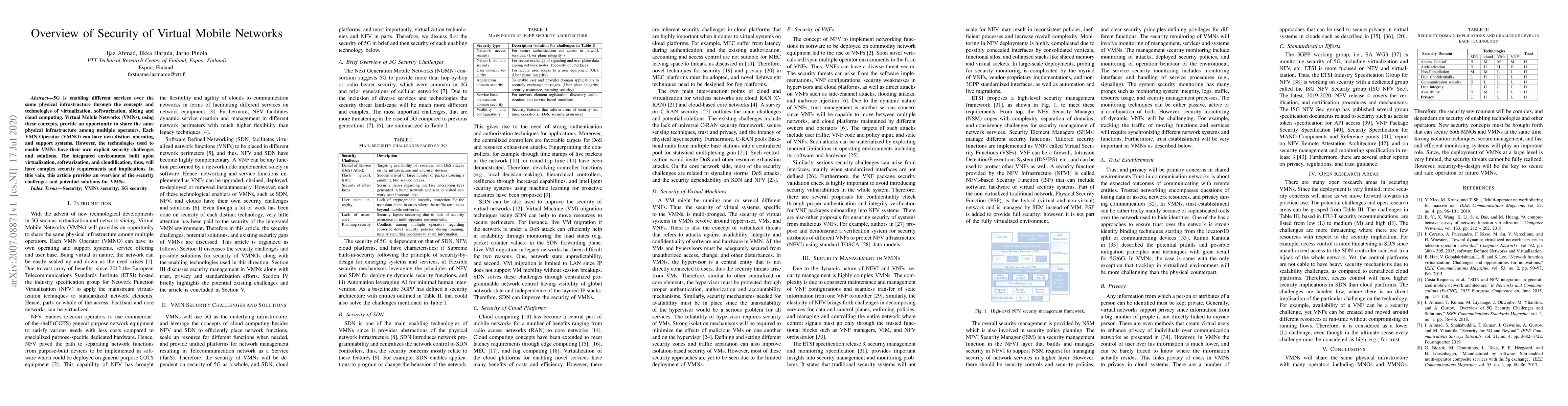 5G is enabling different services over the same physical infrastructure through the concepts and technologies of virtualization, softwarization, slicing and cloud computing. Virtual Mobile Networks (VMNs), using these concepts, provide an opportunity to share the same physical infrastructure among multiple operators. Each VMN Operator (VMNO) can have own distinct operating and support systems. However, the technologies used to enable VMNs have their own explicit security challenges and solutions. The integrated environment built upon virtualization, softwarization, and cloudification, thus, will have complex security requirements and implications. In this vain, this article provides an overview of the security challenges and potential solutions for VMNs.