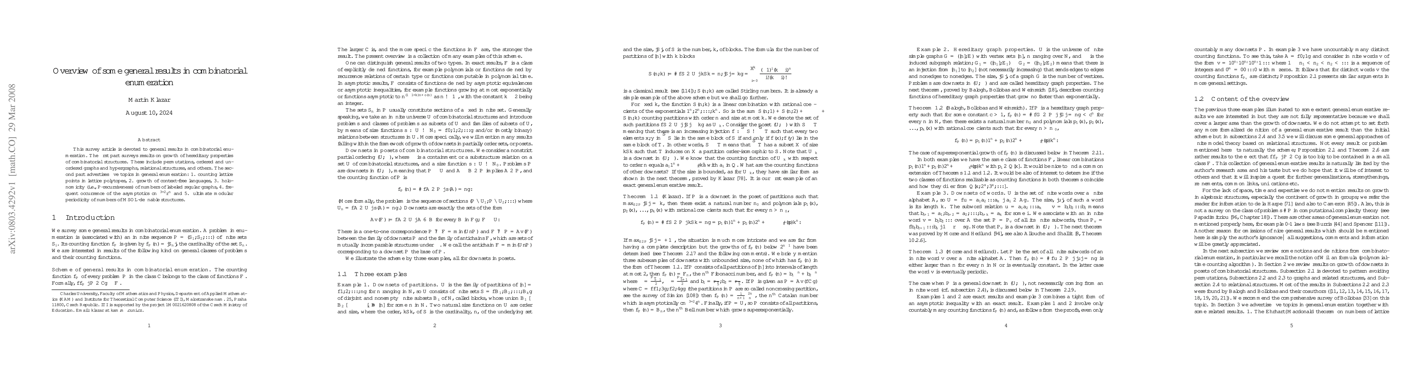 This survey article reviews general results in combinatorial enumeration, focusing on the growth of hereditary properties of various combinatorial structures. It also highlights five key topics in general enumeration, including counting lattice points, growth of context-free languages, and the asymptotics of labeled regular graphs.
