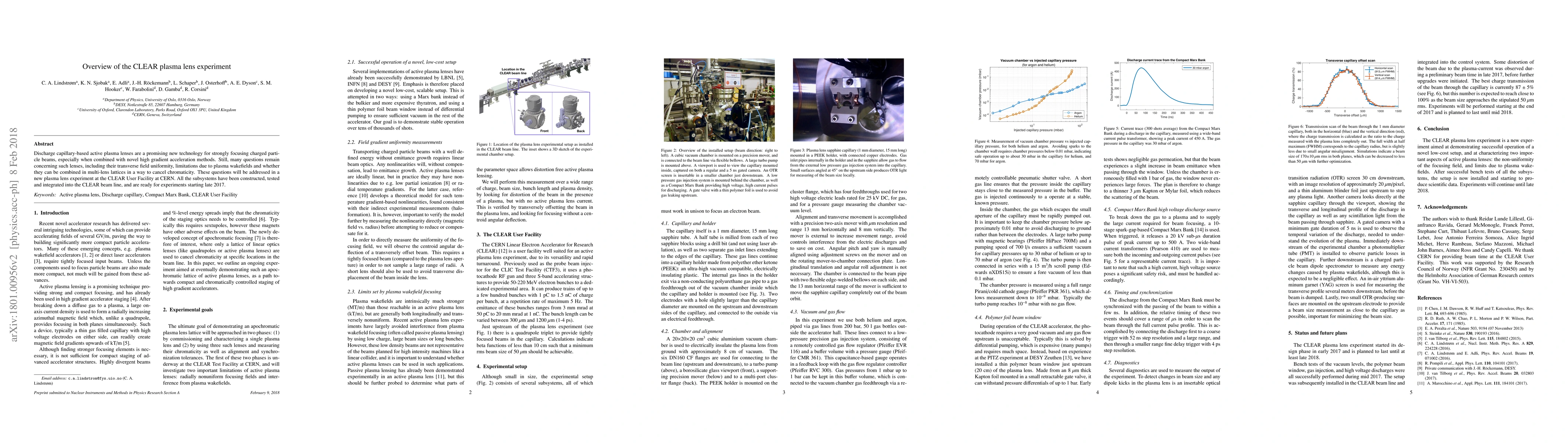 Discharge capillary-based active plasma lenses are a promising new technology for strongly focusing charged particle beams, especially when combined with novel high gradient acceleration methods. Still, many questions remain concerning such lenses, including their transverse field uniformity, limitations due to plasma wakefields and whether they can be combined in multi-lens lattices in a way to cancel chromaticity. These questions will be addressed in a new plasma lens experiment at the CLEAR User Facility at CERN. All the subsystems have been constructed, tested and integrated into the CLEAR beam line, and are ready for experiments starting late 2017.