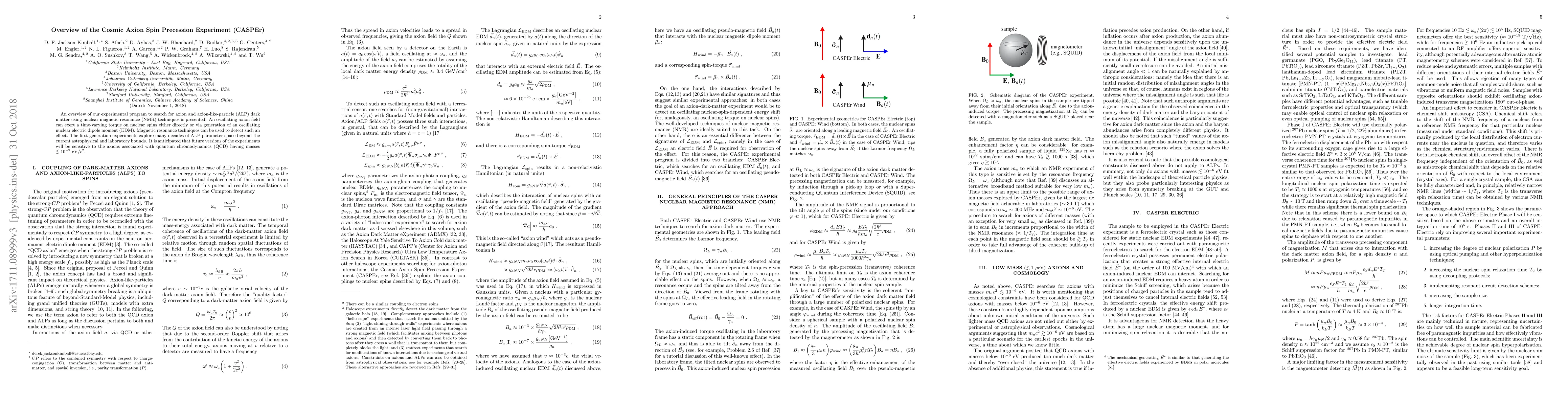 An overview of our experimental program to search for axion and axion-like-particle (ALP) dark matter using nuclear magnetic resonance (NMR) techniques is presented. An oscillating axion field can exert a time-varying torque on nuclear spins either directly or via generation of an oscillating nuclear electric dipole moment (EDM). Magnetic resonance techniques can be used to detect such an effect. The first-stage experiments explore many decades of ALP parameter space beyond the current astrophysical and laboratory bounds. It is anticipated that future versions of the experiments will be sensitive to the axions associated with quantum chromodynamics (QCD) having masses $\lesssim 10^{-9}~{\rm eV}/c^2$.