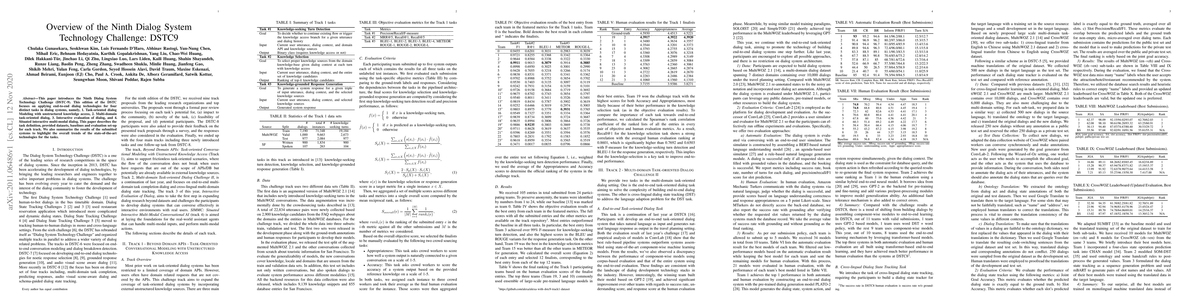 This paper presents the Ninth Dialog System Technology Challenge (DSTC-9), focusing on four tasks: task-oriented dialog modeling, multi-domain dialog, interactive dialog evaluation, and situated multi-modal dialog. It outlines the tasks, datasets, baselines, and evaluation setup, and summarizes the results to highlight current state-of-the-art trends.