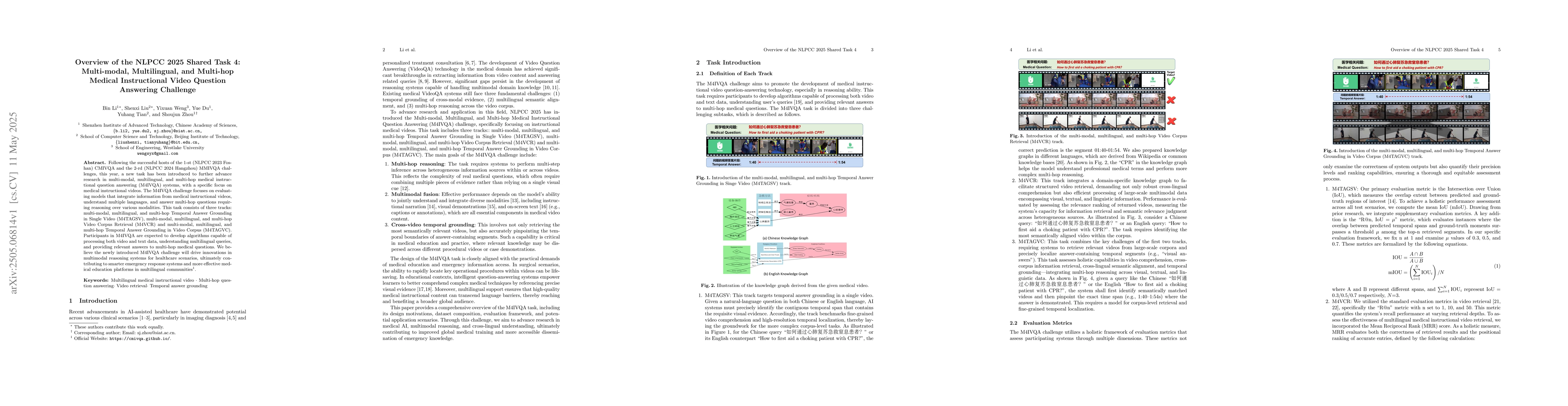 The NLPCC 2025 Shared Task 4 aims to advance multi-modal, multilingual, and multi-hop medical instructional question answering systems through a new challenge focusing on medical instructional videos. Participants must develop algorithms that process video and text data, understand multilingual queries, and provide answers to multi-hop medical questions in various languages and modalities.