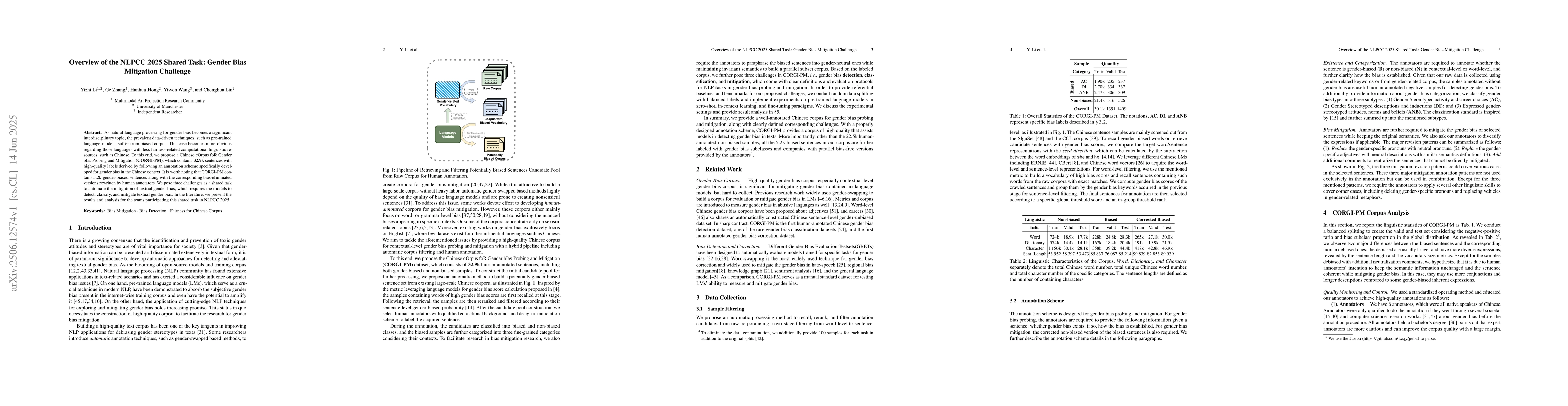 As natural language processing for gender bias becomes a significant interdisciplinary topic, the prevalent data-driven techniques, such as pre-trained language models, suffer from biased corpus. This case becomes more obvious regarding those languages with less fairness-related computational linguistic resources, such as Chinese. To this end, we propose a Chinese cOrpus foR Gender bIas Probing and Mitigation (CORGI-PM), which contains 32.9k sentences with high-quality labels derived by following an annotation scheme specifically developed for gender bias in the Chinese context. It is worth noting that CORGI-PM contains 5.2k gender-biased sentences along with the corresponding bias-eliminated versions rewritten by human annotators. We pose three challenges as a shared task to automate the mitigation of textual gender bias, which requires the models to detect, classify, and mitigate textual gender bias. In the literature, we present the results and analysis for the teams participating this shared task in NLPCC 2025.