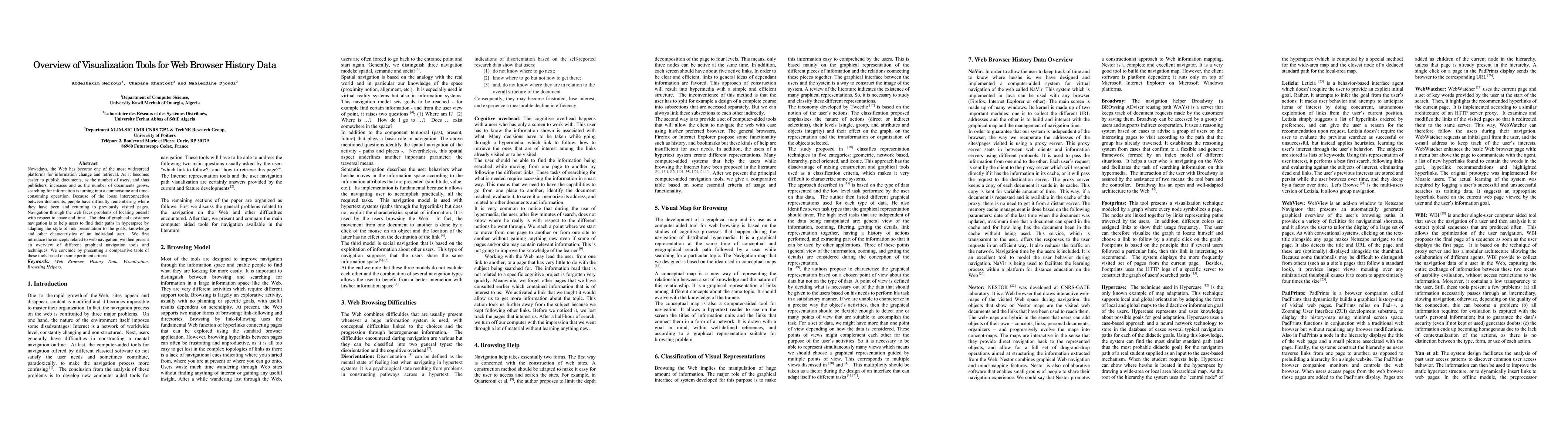 This paper explores the challenges of navigating web browser history data, introducing concepts related to web navigation and providing an overview of various graphical navigation tools and techniques. It concludes with a comparative table evaluating these tools based on relevant criteria.