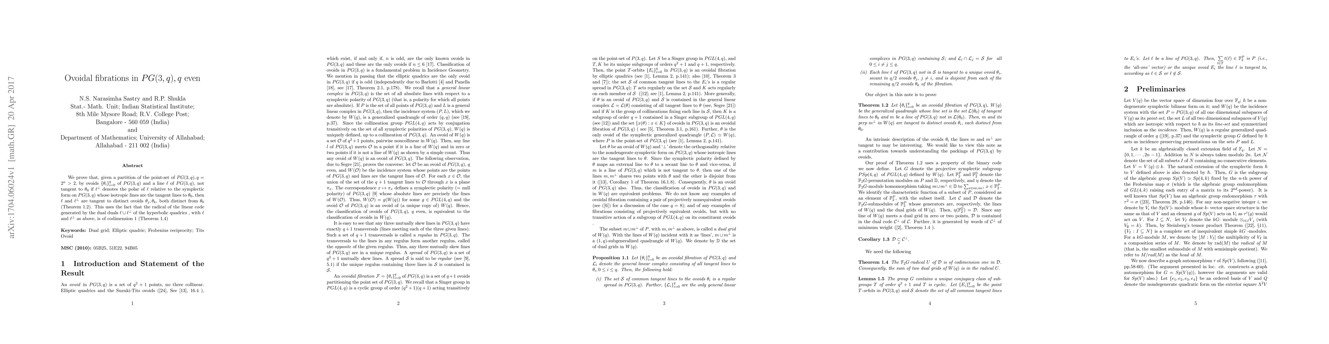 The paper proves a theorem about ovoidal fibrations in PG(3,q) using properties of linear codes and the symplectic form on PG(3,q).