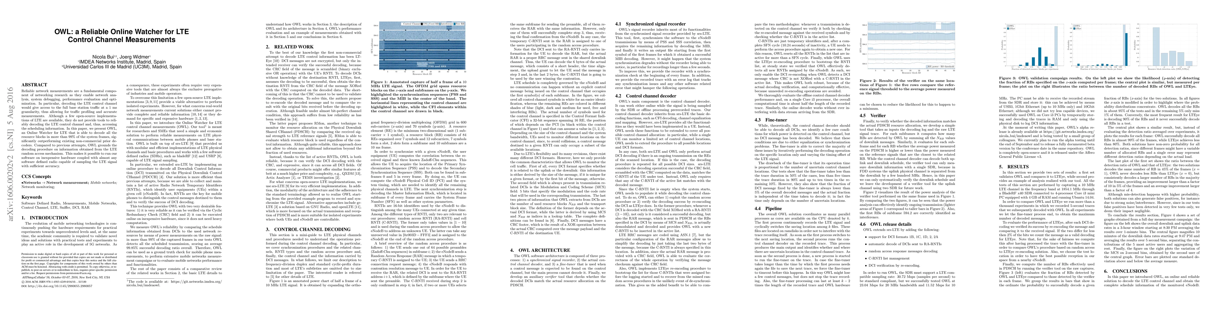 OWL, an online decoder for LTE control channels, reliably decodes over 99% of system frames, outperforming existing methods using the LTE random access mechanism on low-cost hardware.