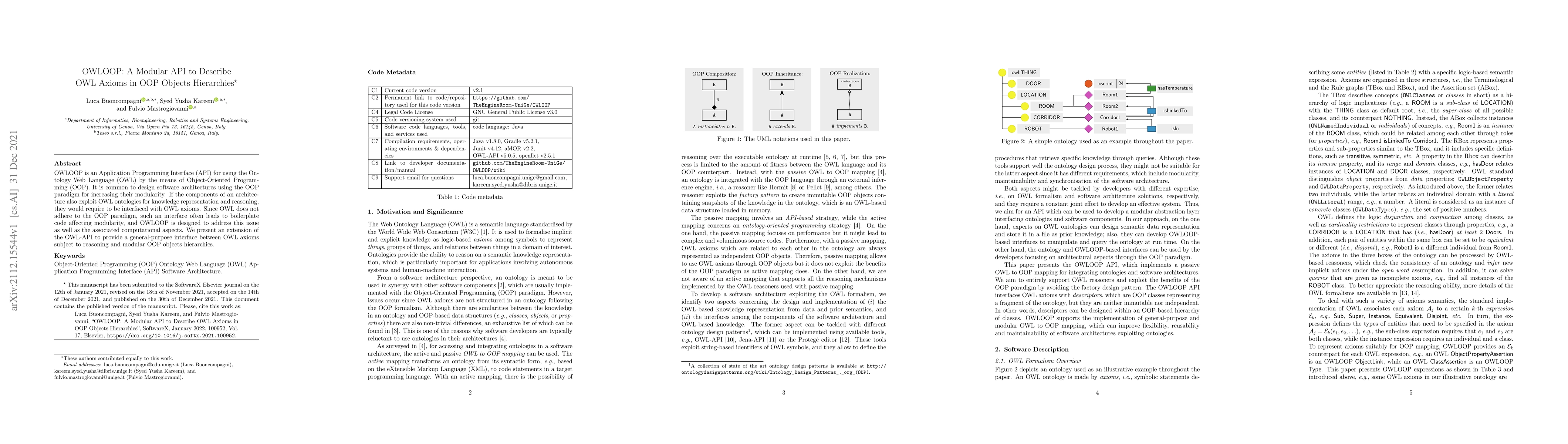OWLOOP is an API that bridges Object-Oriented Programming (OOP) with the Ontology Web Language (OWL) to enhance modularity and reduce boilerplate code. It extends the OWL-API to facilitate seamless interaction between OWL axioms and OOP object hierarchies.
