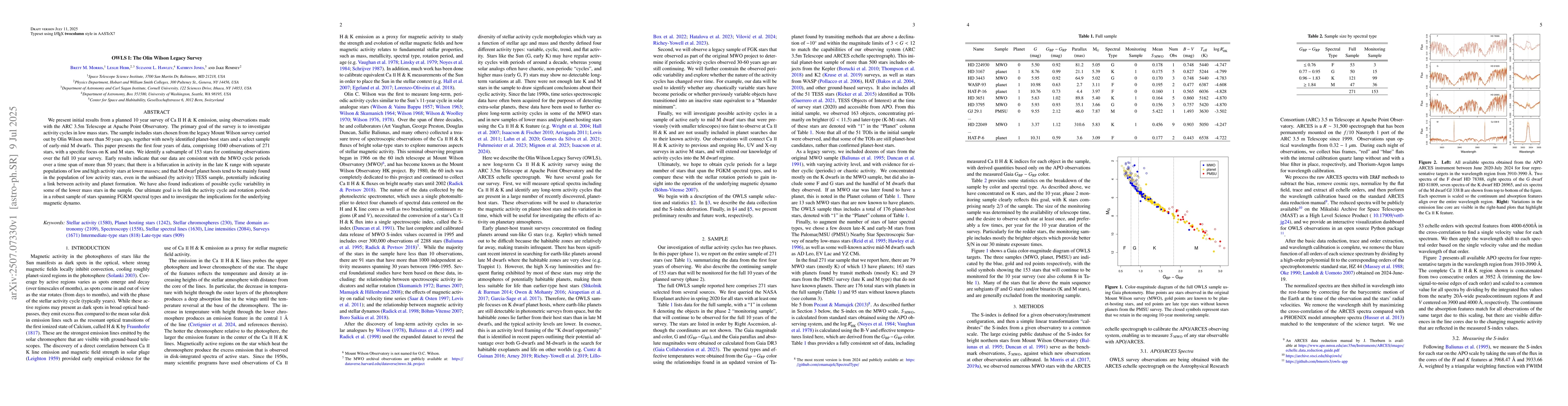 We present initial results from a planned 10 year survey of Ca II H & K emission, using observations made with the ARC 3.5m Telescope at Apache Point Observatory. The primary goal of the survey is to investigate activity cycles in low mass stars. The sample includes stars chosen from the legacy Mount Wilson survey carried out by Olin Wilson more than 50 years ago, together with newly identified planet-host stars and a select sample of early-mid M dwarfs. This paper presents the first four years of data, comprising 1040 observations of 271 stars, with a specific focus on K and M stars. We identify a subsample of 153 stars for continuing observations over the full 10 year survey. Early results indicate that our data are consistent with the MWO cycle periods over a time span of more than 50 years; that there is a bifurcation in activity in the late K range with separate populations of low and high activity stars at lower masses; and that M dwarf planet hosts tend to be mainly found in the population of low activity stars, even in the unbiased (by activity) TESS sample, potentially indicating a link between activity and planet formation. We have also found indications of possible cyclic variability in some of the lower mass stars in the sample. Our ultimate goal is to link the activity cycle and rotation periods in a robust sample of stars spanning FGKM spectral types and to investigate the implications for the underlying magnetic dynamo.