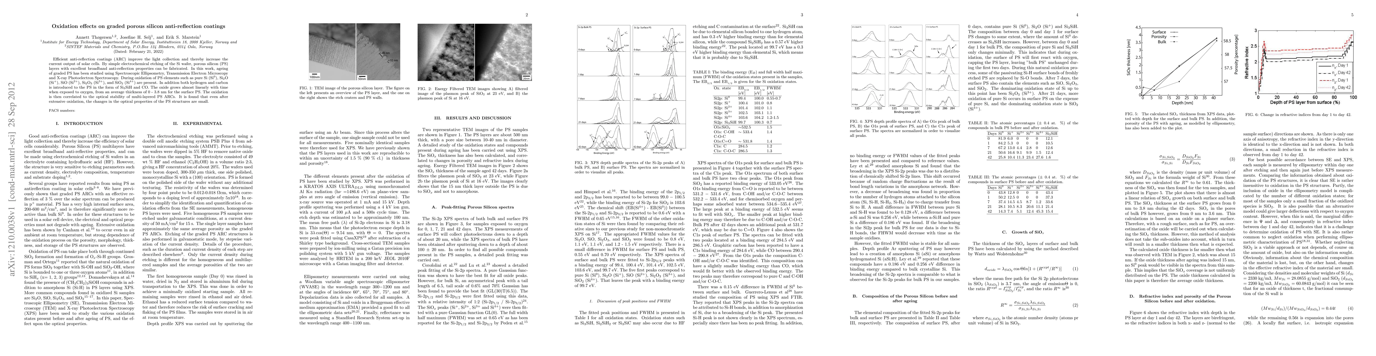 This study investigates the oxidation of graded porous silicon anti-reflection coatings (ARC) and finds that despite significant oxidation, the optical properties remain stable. The oxidation process introduces various silicon oxides and introduces hydrogen and carbon compounds, but the optical stability of the multi-layered PS ARCs is largely unaffected.