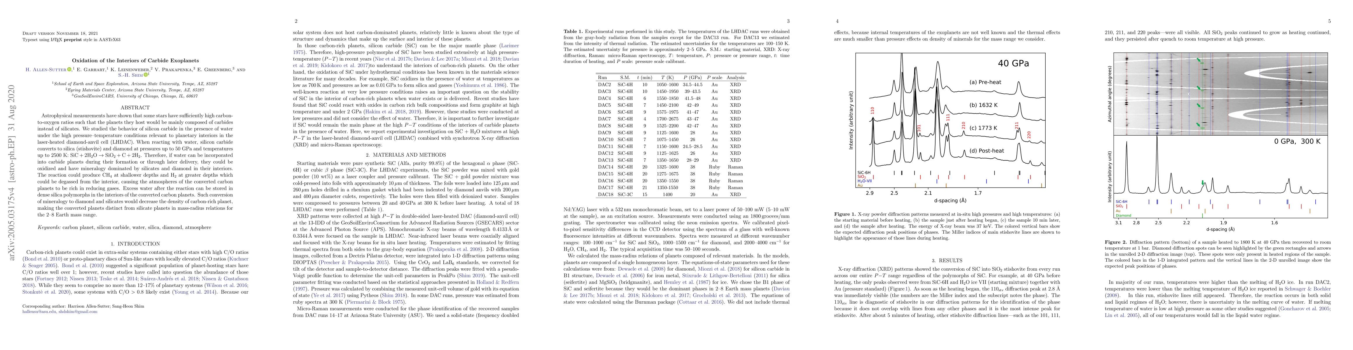 This study investigates the oxidation of carbide exoplanet interiors under high pressure and temperature, revealing that silicon carbide reacts with water to form silica, diamond, and gases like methane and hydrogen. This transformation could significantly alter the mineralogy and density of carbon-rich planets, leading to unique mass-radius relationships.