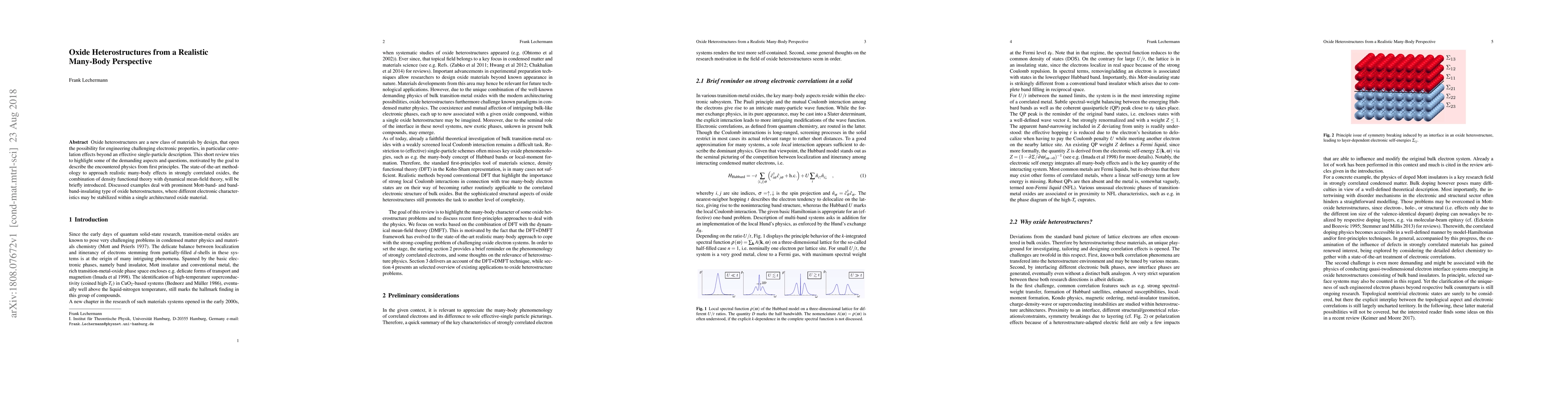 This paper reviews oxide heterostructures' potential for engineering electronic properties, emphasizing correlation effects beyond single-particle descriptions. It introduces the combined density functional theory and dynamical mean-field theory for realistic many-body effects, focusing on Mott-band and band-band insulating oxide heterostructures.