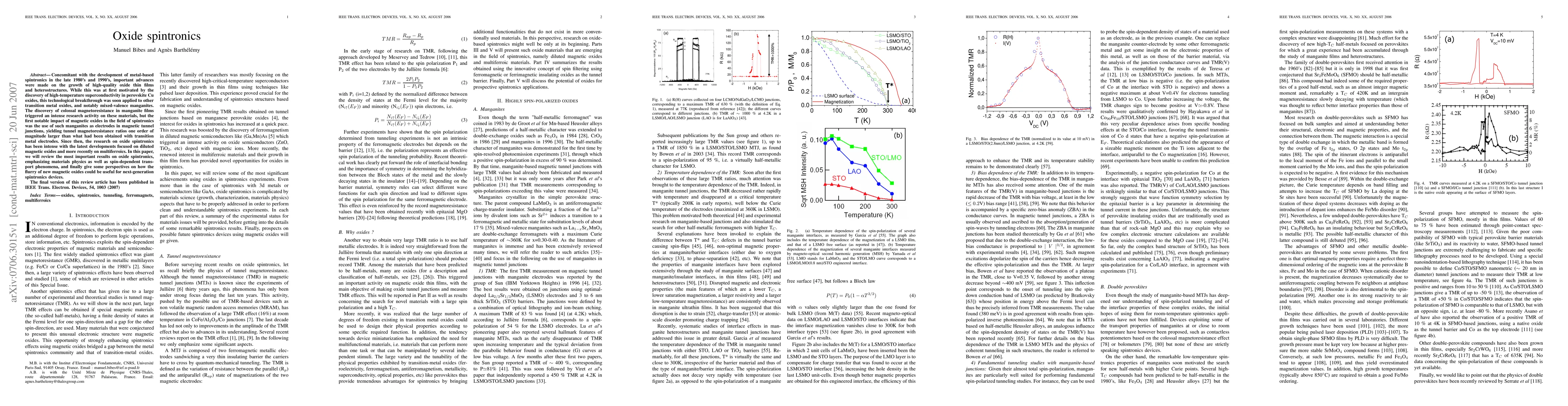 This paper reviews the significant advancements in oxide spintronics, highlighting the pivotal role of mixed-valence manganites in enhancing tunnel magnetoresistance and exploring the potential of new magnetic oxides for next-generation spintronics devices. It emphasizes material physics and spin-dependent transport phenomena.