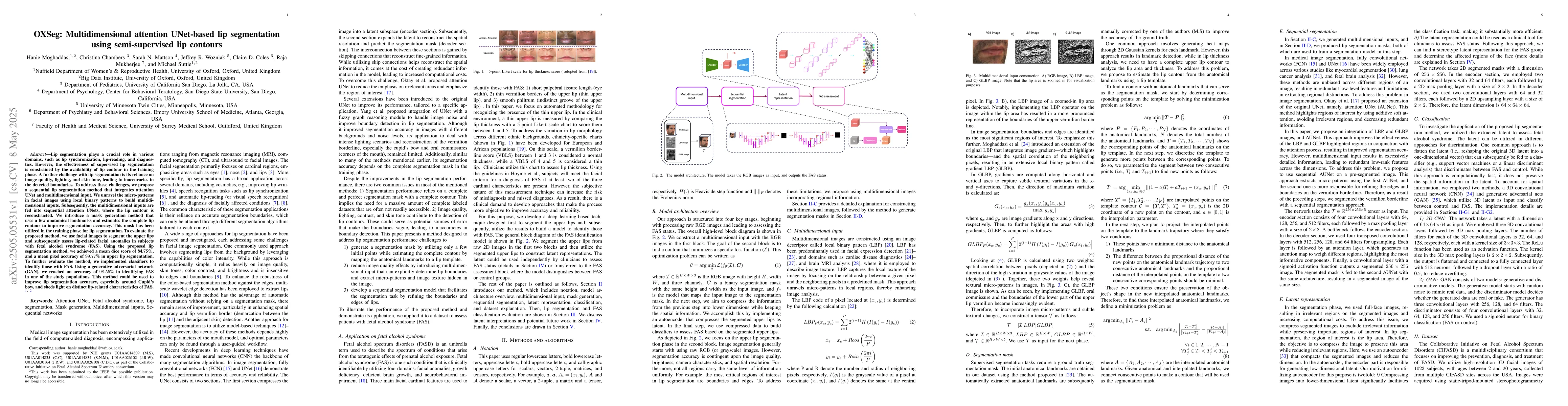 Researchers propose a novel lip segmentation method using attention UNet-based architecture with multidimensional input, achieving high accuracy in upper lip segmentation and identifying facial anomalies in subjects with fetal alcohol syndrome.