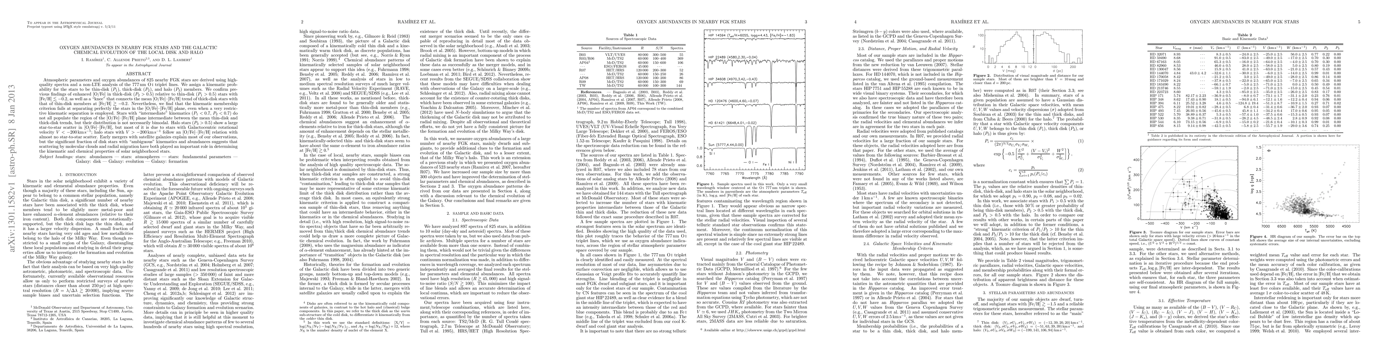 This paper analyzes oxygen abundances in 825 nearby FGK stars, revealing enhanced [O/Fe] in thick-disk stars compared to thin-disk stars, and identifies a "knee" in the [O/Fe]-[Fe/H] trend. It suggests that early galaxy mergers and radial migration significantly influence the chemical evolution of the local disk and halo.