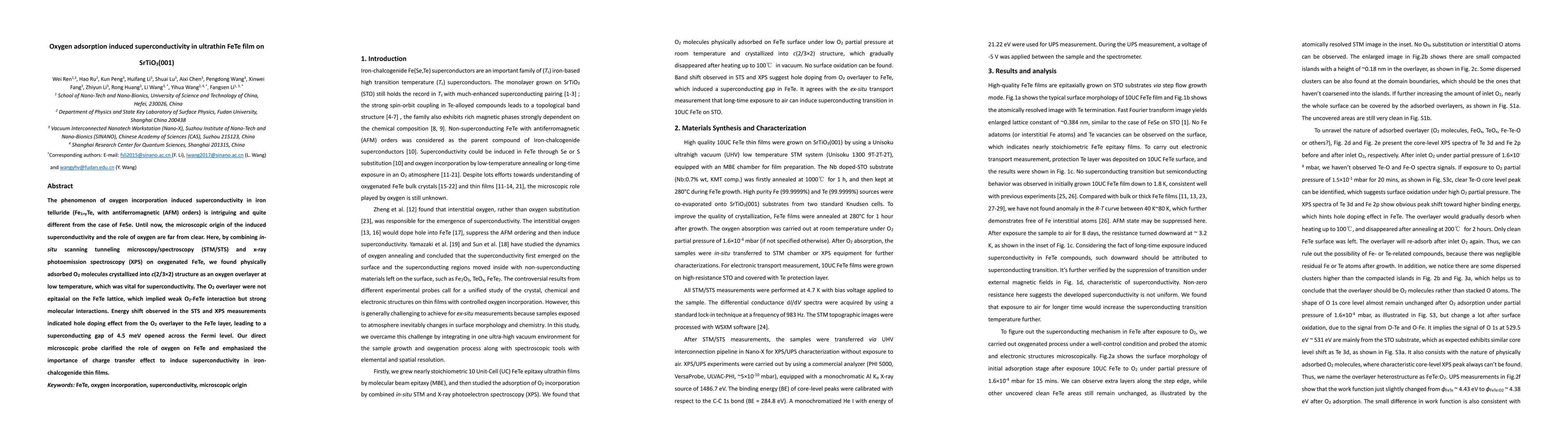 This study reveals that oxygen adsorption induces superconductivity in ultrathin FeTe films on SrTiO3, facilitated by a non-epitaxial O2 overlayer that leads to hole doping and a superconducting gap of 4.5 meV, highlighting the importance of charge transfer in iron-chalcogenide thin films.