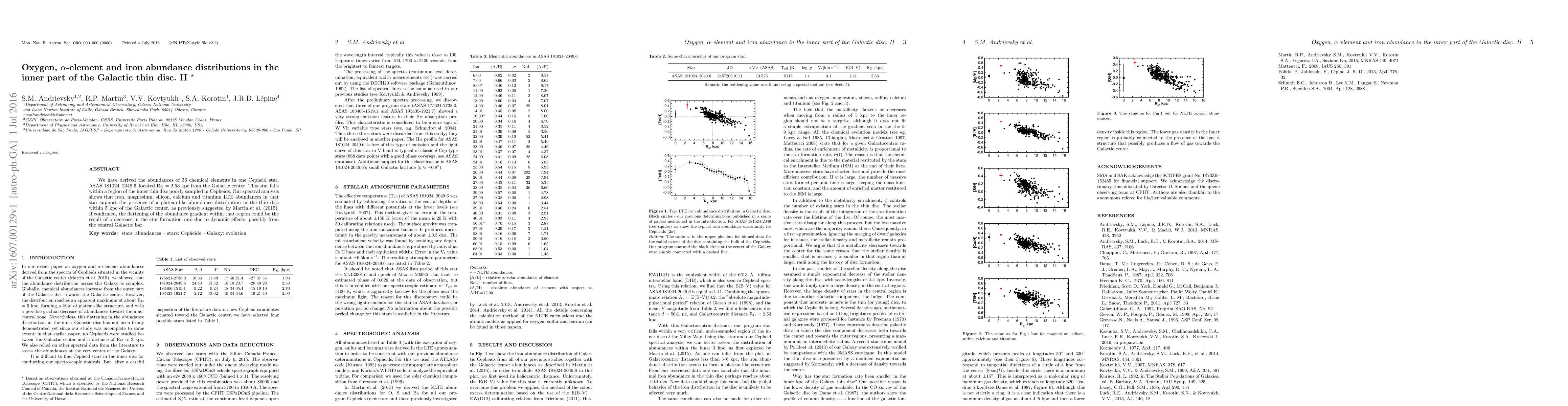 This paper derives the abundances of 36 elements in the Cepheid star ASAS 181024--2049.6, finding support for a plateau-like abundance distribution in the inner Galactic thin disc within 5 kpc of the Galactic center, potentially due to decreased star formation rate from dynamic effects.