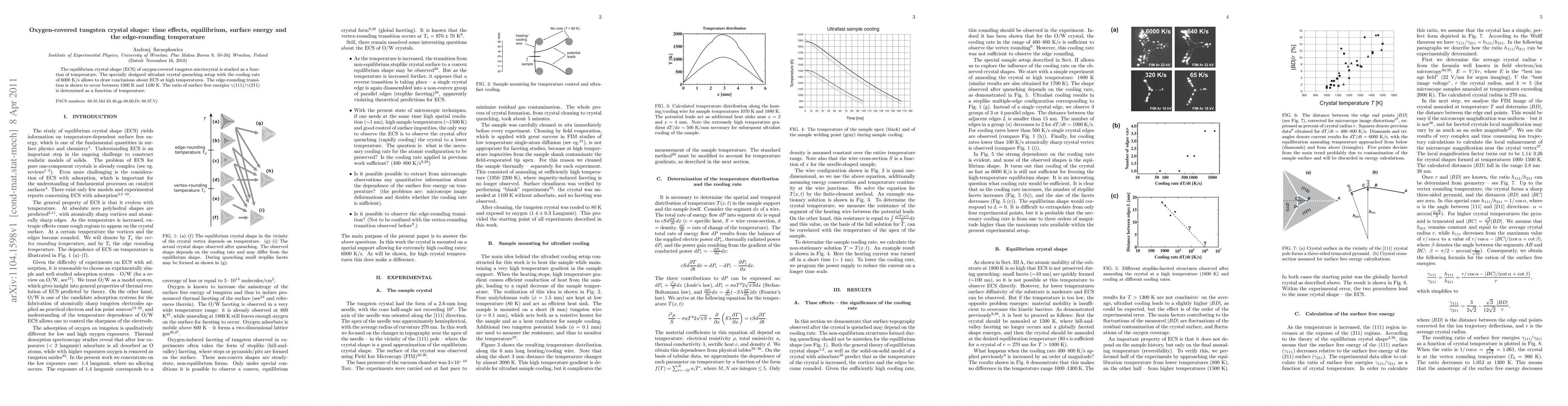 The equilibrium crystal shape (ECS) of oxygen-covered tungsten micricrystal is studied as a function of temperature. The specially designed ultrafast crystal quenching setup with the cooling rate of 6000 K/s allows to draw conclusions about ECS at high temperatures. The edge-rounding transition is shown to occur between 1300 K and 1430 K. The ratio of surface free energies $\gamma(111)/\gamma(211)$ is determined as a function of temperature.