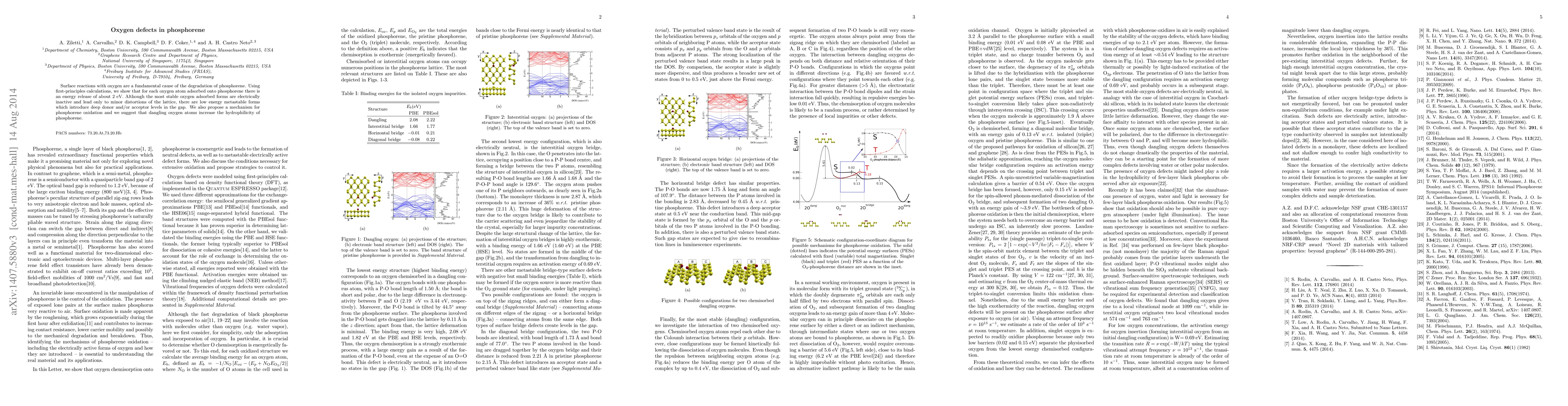 This paper investigates the impact of oxygen defects on phosphorene, revealing that adsorption leads to energy release and introduces deep donor/acceptor levels, potentially degrading its properties. The study proposes a mechanism for phosphorene oxidation and suggests that dangling oxygen atoms enhance hydrophilicity via hydrogen bonding.