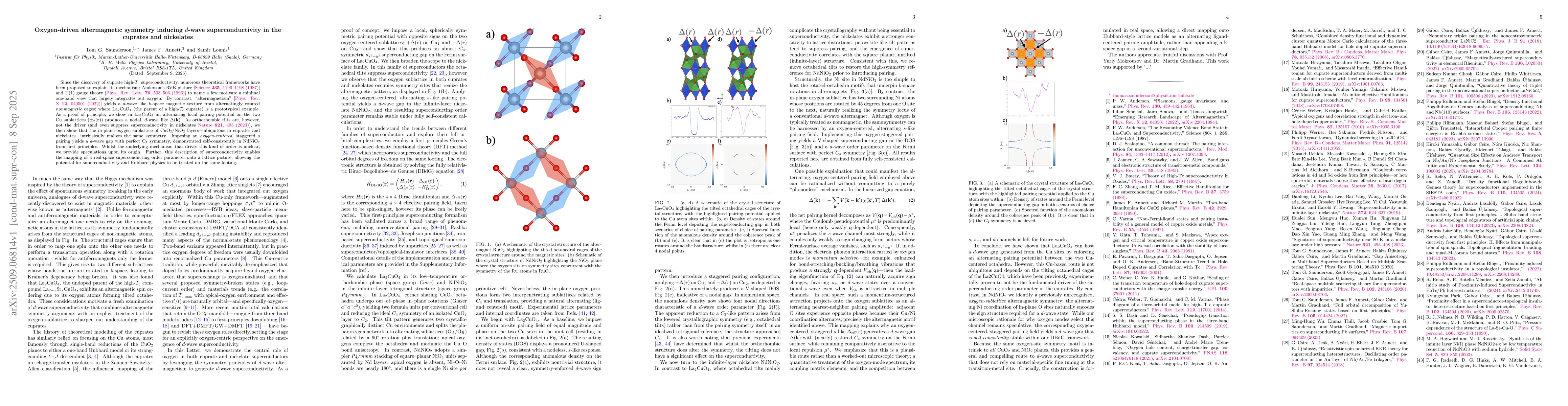 Since the discovery of cuprate high-Tc superconductivity, numerous theoretical frameworks have been proposed; Anderson's RVB picture (Science 235, 1196-1198, 1987) and U(1) gauge theory (Phys. Rev. Lett. 76, 503-506, 1996) motivate a minimal one-band view that largely integrates out oxygen. By contrast, altermagnetism (Phys. Rev. X 12, 040501, 2022) yields a d-wave-like k-space magnetic texture from alternatingly rotated nonmagnetic cages; La2CuO4 (the parent of a high-Tc cuprate) is a prototypical example. As a proof of principle, we show in La2CuO4 that an alternating local pairing potential on the two Cu sublattices (plus/minus s(r)) produces a nodal, d-wave-like Delta(k). Since orthorhombic tilts are not the driver (and even suppress superconductivity in nickelates; Nature 621, 493, 2023), we then show that the in-plane oxygen sublattice of CuO2/NiO2 layers - ubiquitous in cuprates and nickelates - intrinsically realizes the same symmetry. Imposing an oxygen-centered, staggered s pairing yields a d-wave gap with perfect C4 symmetry, demonstrated self-consistently in NdNiO2 from first principles. While the microscopic origin remains open, we outline possible scenarios, and our real-space construction maps directly onto lattice models, placing superconductivity and Hubbard physics on the same footing.