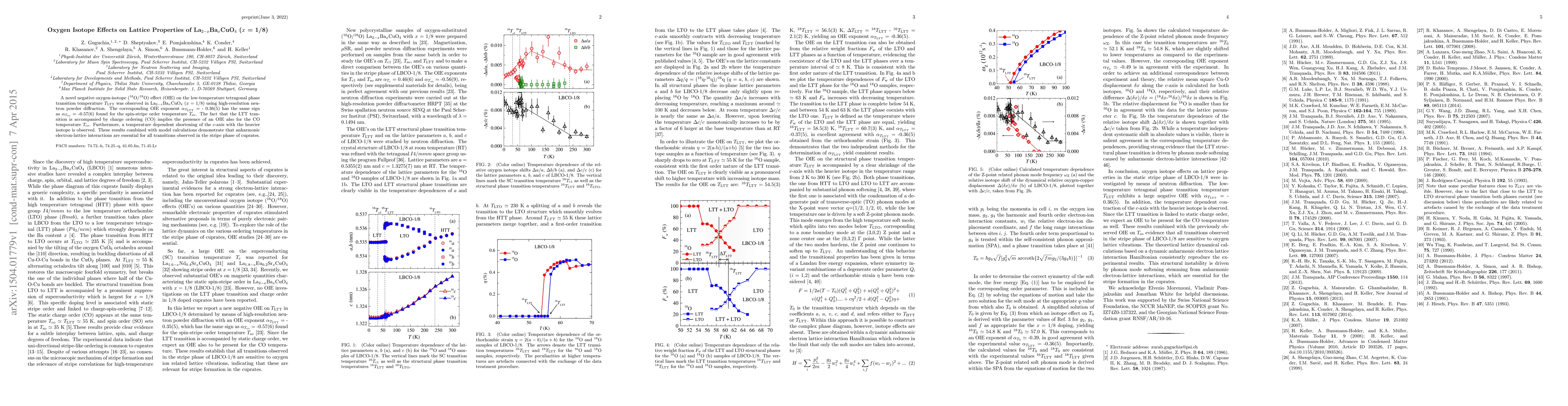 A novel negative oxygen-isotope (16O/18O) effect (OIE) on the low-temperature tetragonal phase transition temperature T_{LTT} was observed in La_{2-x}Ba_xCuO_4 (x = 1/8) using high-resolution neutron powder diffraction. The corresponding OIE exponent alpha(T_{LTT}) = - 0.36(5) has the same sign as alpha(T_{so}) = -0.57(6) found for the spin-stripe order temperature T_so. The fact that the LTT transition is accompanied by charge ordering (CO) implies the presence of an OIE also for the CO temperature T_co. Furthermore, a temperature dependent shortening of the c-axis with the heavier isotope is observed. These results combined with model calculations demonstrate that anharmonic electron-lattice interactions are essential for all transitions observed in the stripe phase of cuprates.