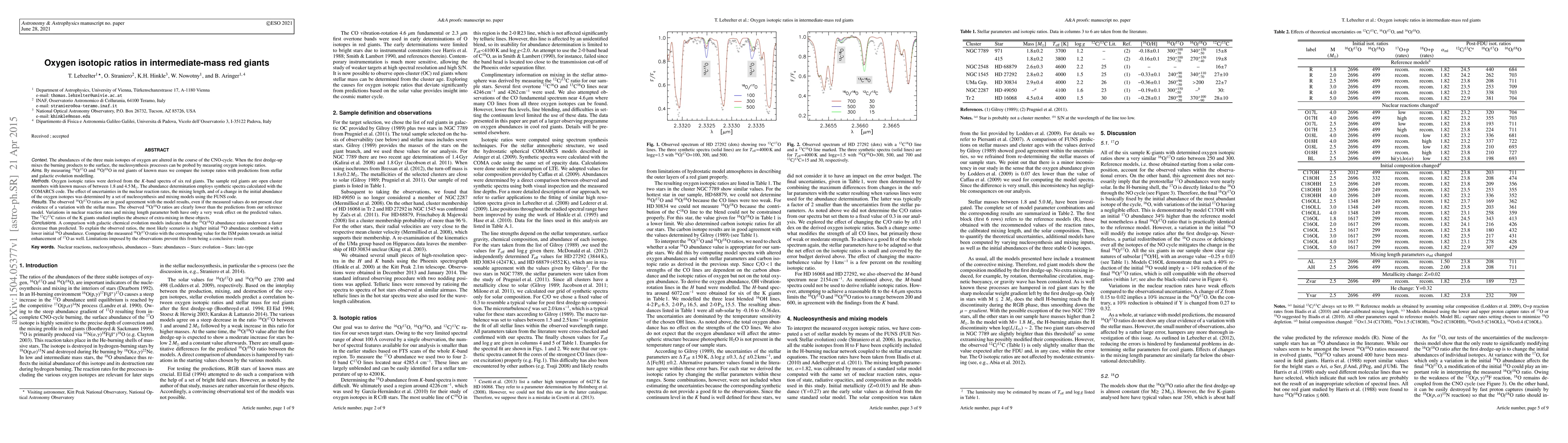 This study measures oxygen isotopic ratios in intermediate-mass red giants to compare with predictions from stellar evolution models. The observed 16O/17O ratios align well with models, while 16O/18O ratios are lower than predicted, suggesting a higher initial 18O abundance and lower initial 16O abundance.