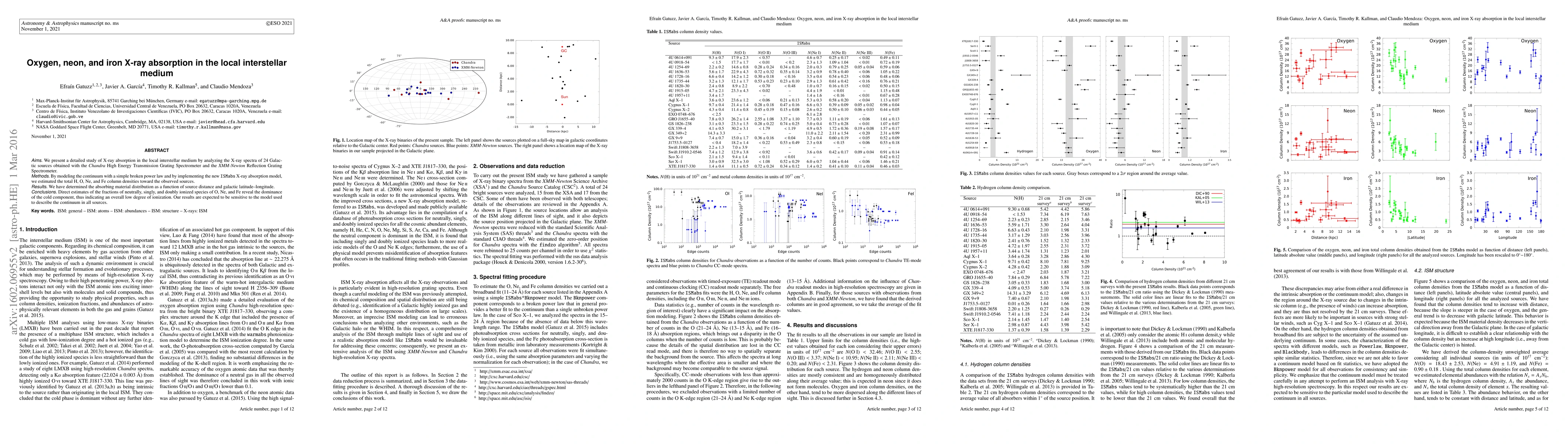This study analyzes X-ray spectra from 24 galactic sources to determine the column densities of H, O, Ne, and Fe in the local interstellar medium using the {\it Chandra} and {\it XMM-Newton} spectrometers. The findings suggest a dominance of cold, low-ionization components in the absorbing material.