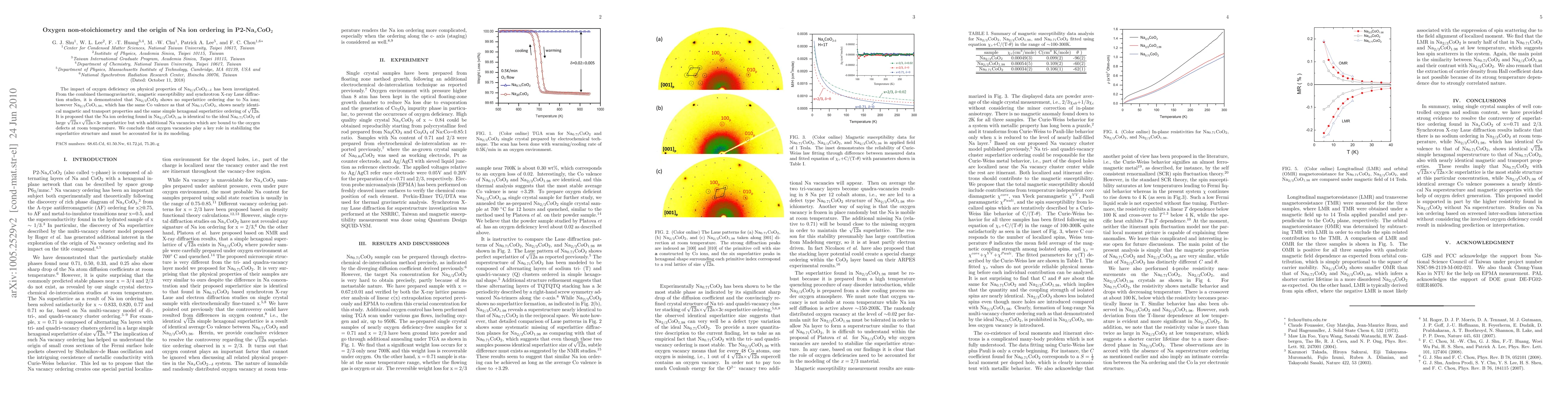 The impact of oxygen deficiency on physical properties of Na2/3CoO2-x has been investigated. From the combined thermogravimetric, magnetic susceptibility and synchrotron X-ray Laue diffraction studies, it is demonstrated that Na2/3CoO2 shows no superlattice ordering due to Na ions; however Na2/3CoO1.98, which has the same Co valence as that of Na0.71CoO2, shows nearly identical magnetic and transport properties and the same simple hexagonal superlattice ordering of sqrt(12)a. It is proposed that the Na ion ordering found in Na2/3CoO1.98 is identical to the ideal Na0.71CoO2 of large sqrt(12)a x sqrt(12)a x 3c superlattice but with additional Na vacancies which are bound to the oxygen defects at room temperature. We conclude that oxygen vacancies play a key role in stabilizing the superlattice structure and must be accounted for in its modeling.