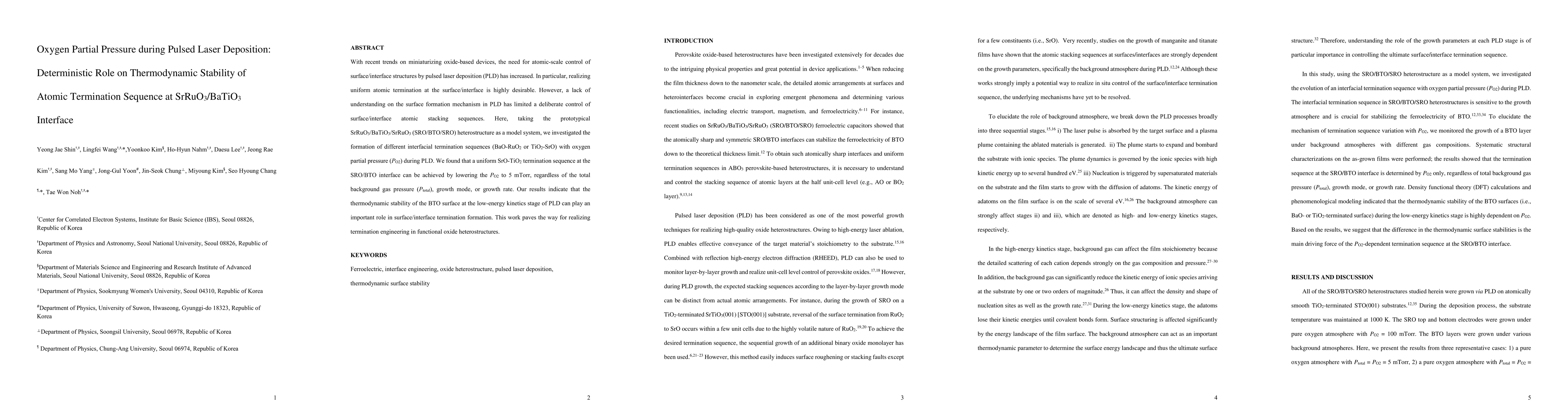The paper presents a detailed analysis of the effect of PO2 on the termination sequences at SrRuO3/BaTiO3 interface, combining DFT calculations and a thermodynamic model to explain the underlying mechanisms.