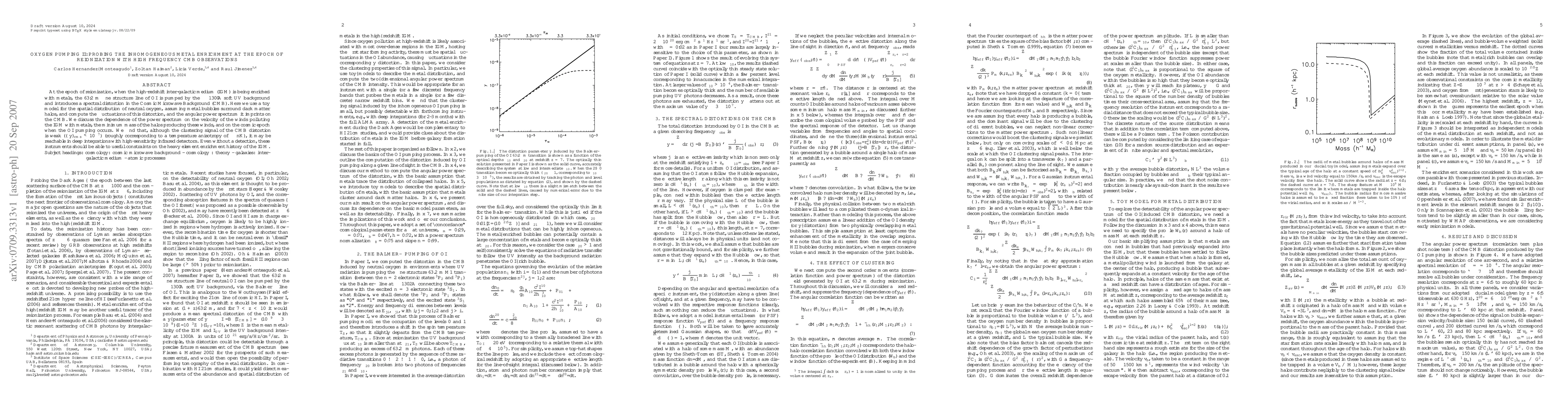 At the epoch of reionization, when the high-redshift inter-galactic medium (IGM) is being enriched with metals, the 63.2 micron fine structure line of OI is pumped by the ~ 1300 AA soft UV background and introduces a spectral distortion in the Cosmic Microwave Background (CMB). Here we use a toy model for the spatial distribution of neutral oxygen, assuming metal bubbles surround dark matter halos, and compute the fluctuations of this distortion, and the angular power spectrum it imprints on the CMB. We discuss the dependence of the power spectrum on the velocity of the winds polluting the IGM with metals, the minimum mass of the halos producing these winds, and on the cosmic epoch when the OI pumping occurs. We find that, although the clustering signal of the CMB distortion is weak \delta y_{rms} ~ 10^{-7} (roughly corresponding to a temperature anisotropy of few nK), it may be reachable in deep integrations with high-sensitivity infrared detectors. Even without a detection, these instruments should be able to useful constraints on the heavy element enrichment history of the IGM.