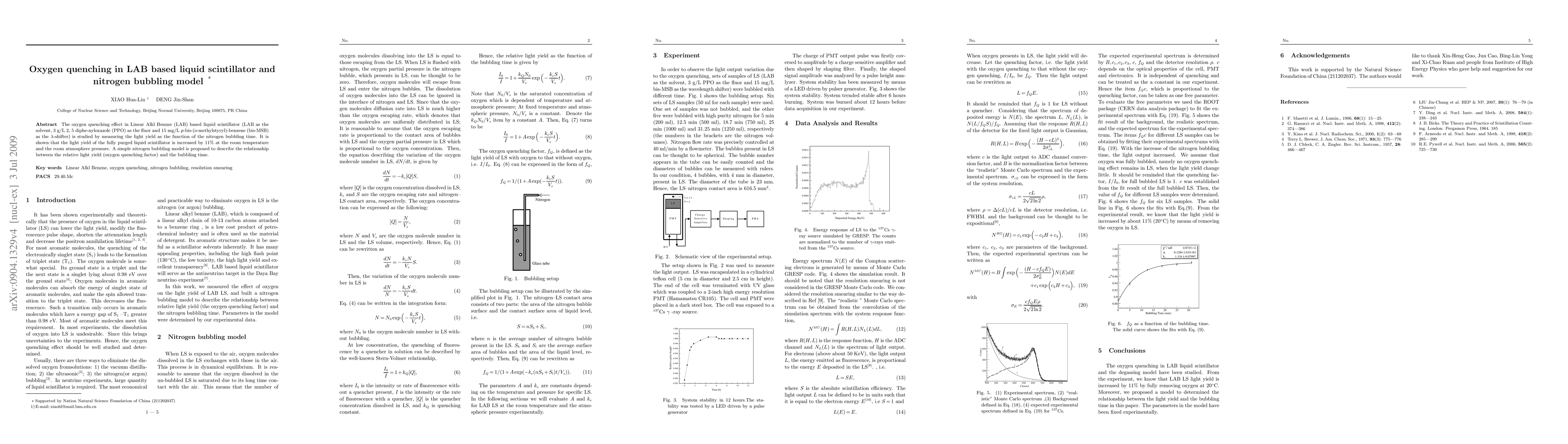 This study investigates the oxygen quenching effect in a Linear Alkyl Benzene (LAB) based liquid scintillator, finding that nitrogen bubbling increases the light yield by 11%. A simple model is proposed to describe the relationship between the light yield and the duration of nitrogen bubbling.