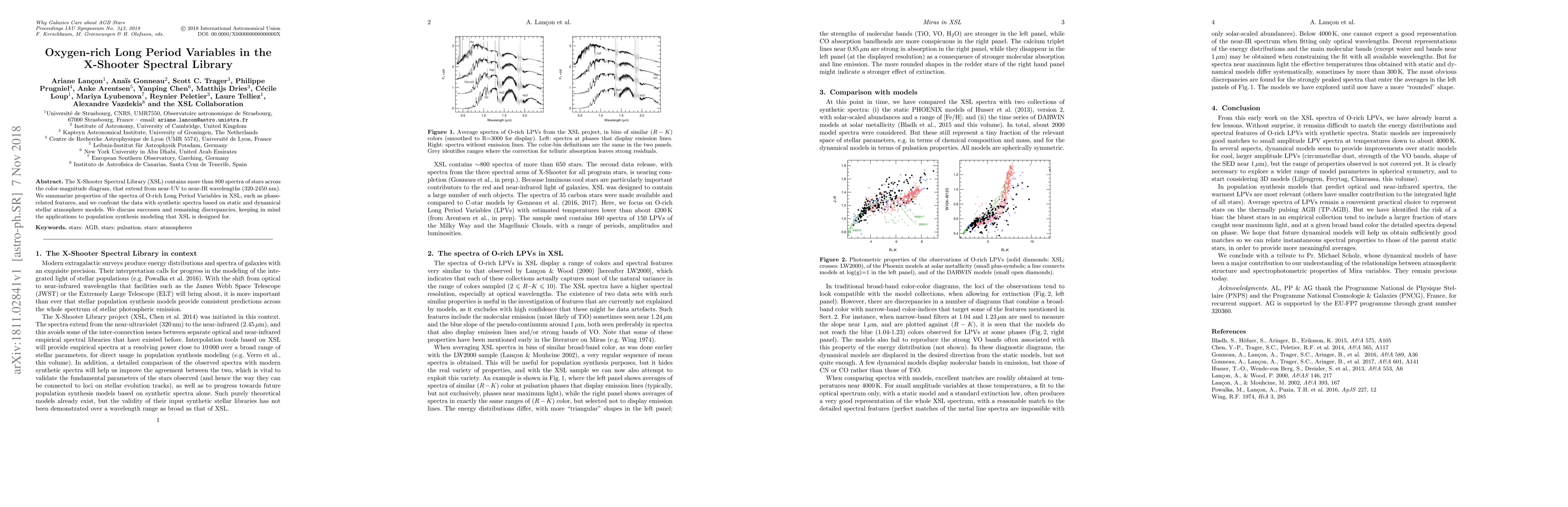 This paper analyzes the spectra of oxygen-rich Long Period Variables in the X-Shooter Spectral Library, comparing observed features with synthetic spectra from stellar models to assess their accuracy for population synthesis modeling. It highlights both successes and ongoing discrepancies in the data.